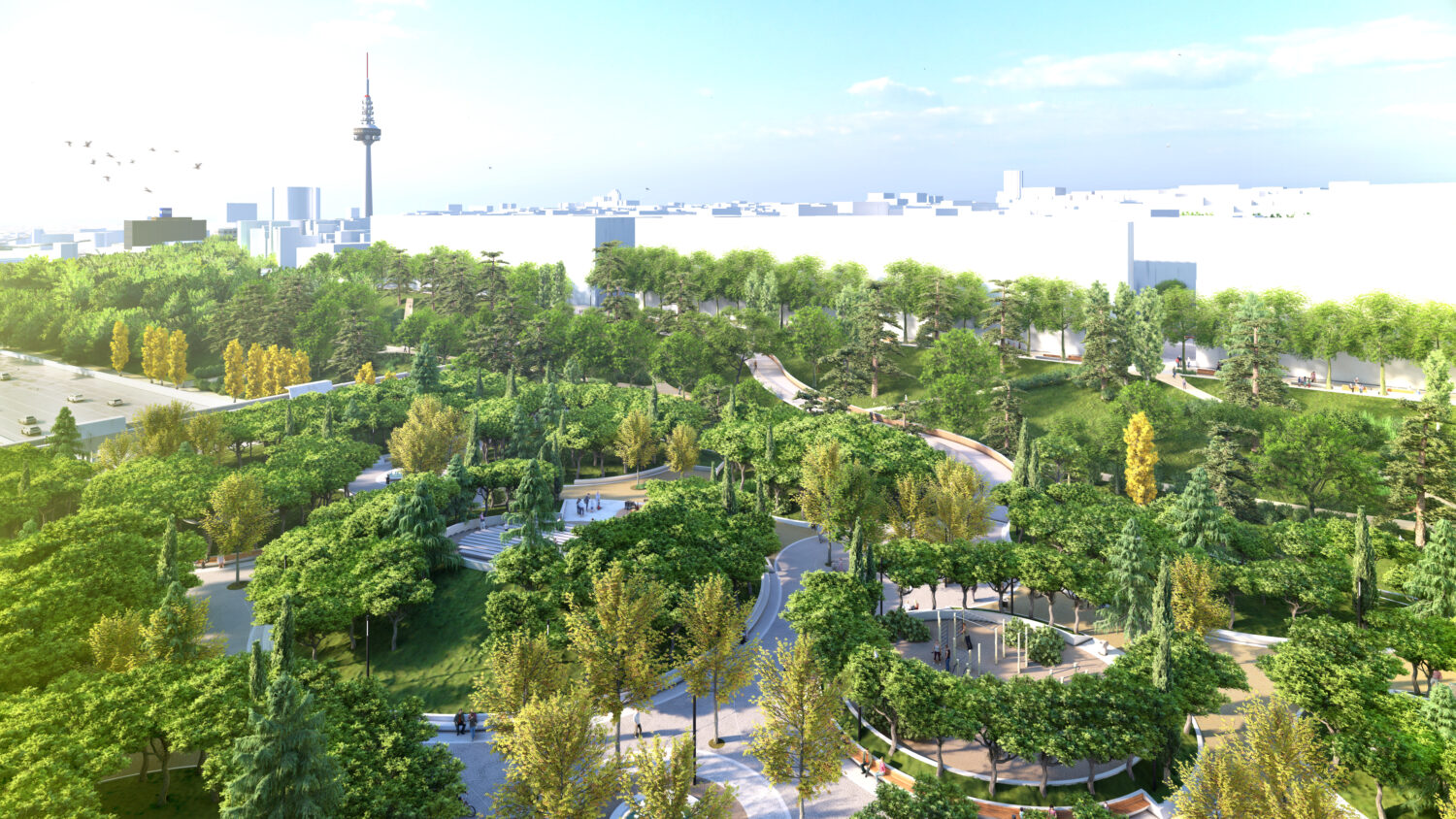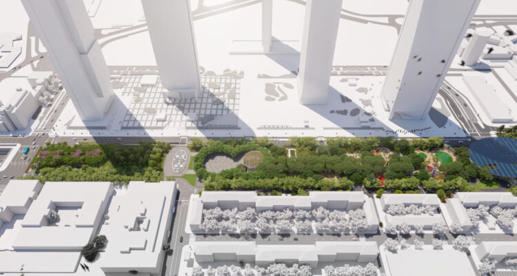 Además del parque sobre la M-30, el proyecto también renovará 40.300 metros cuadrados de espacios en los alrededores, sumando un total de 56.600 metros cuadrados de actuación.