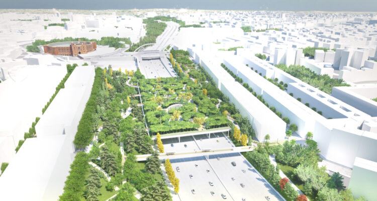 El proyecto de Parque Ventas no solo conectará peatonal y paisajísticamente los distritos de Salamanca y Ciudad Lineal, sino que generará un nuevo espacio de 16.370 m2 sobre la M-30. El proyecto, presentado en febrero de este año, fue definido por el alcalde, José Luís Martínez-Almeida, como un ejemplo de “la imparable transformación urbana” al servicio de los vecinos que se está acometiendo en la ciudad.