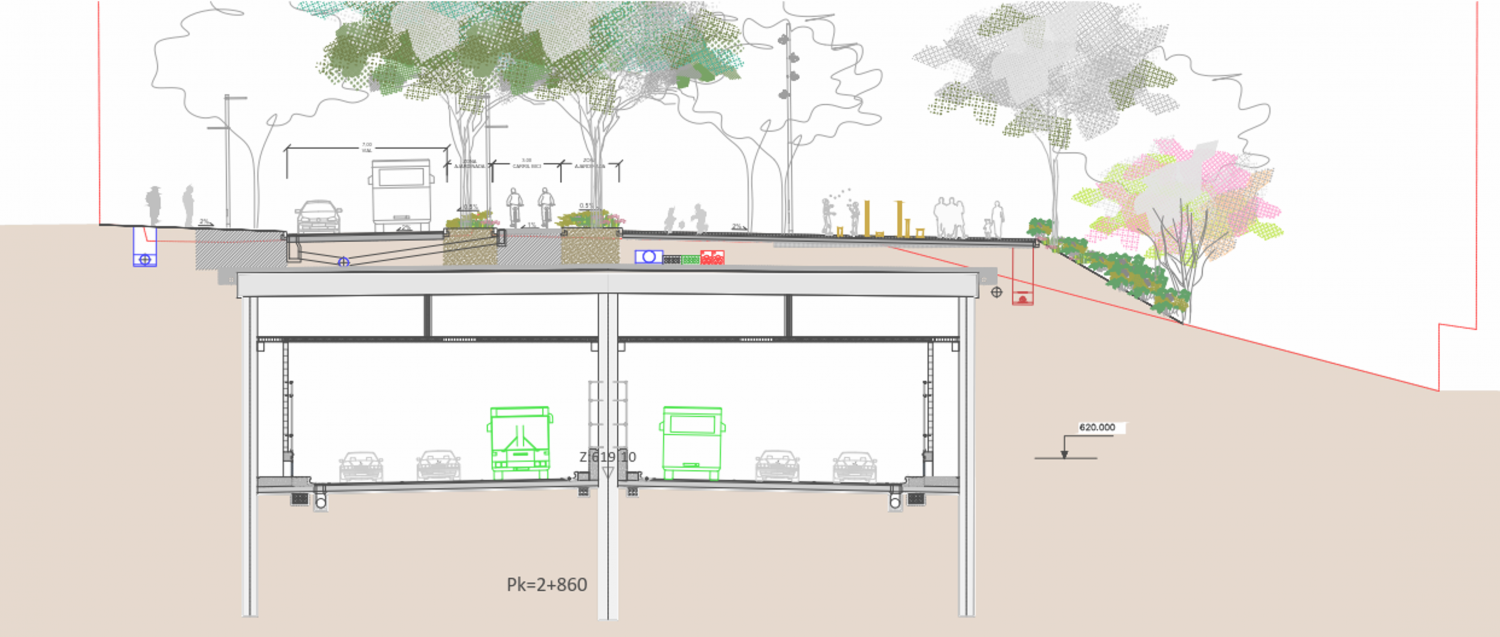Gracias a los túneles, el tráfico se concentrará bajo rasante, dejando la superficie únicamente para el transporte público y el tráfico local de acceso a los edificios, aumentado las zonas peatonales, ajardinadas y de uso público.