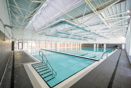 - Centro deportivo: Con 7.190 m², incluye un pabellón polideportivo de 5.000 m² con una gran sala de doble altura, dos salas polivalentes, vestuarios, oficinas y almacenes. La piscina cubierta dispone de dos vasos —uno de 25 metros y otro de aprendizaje—, además de vestuarios y aseos.