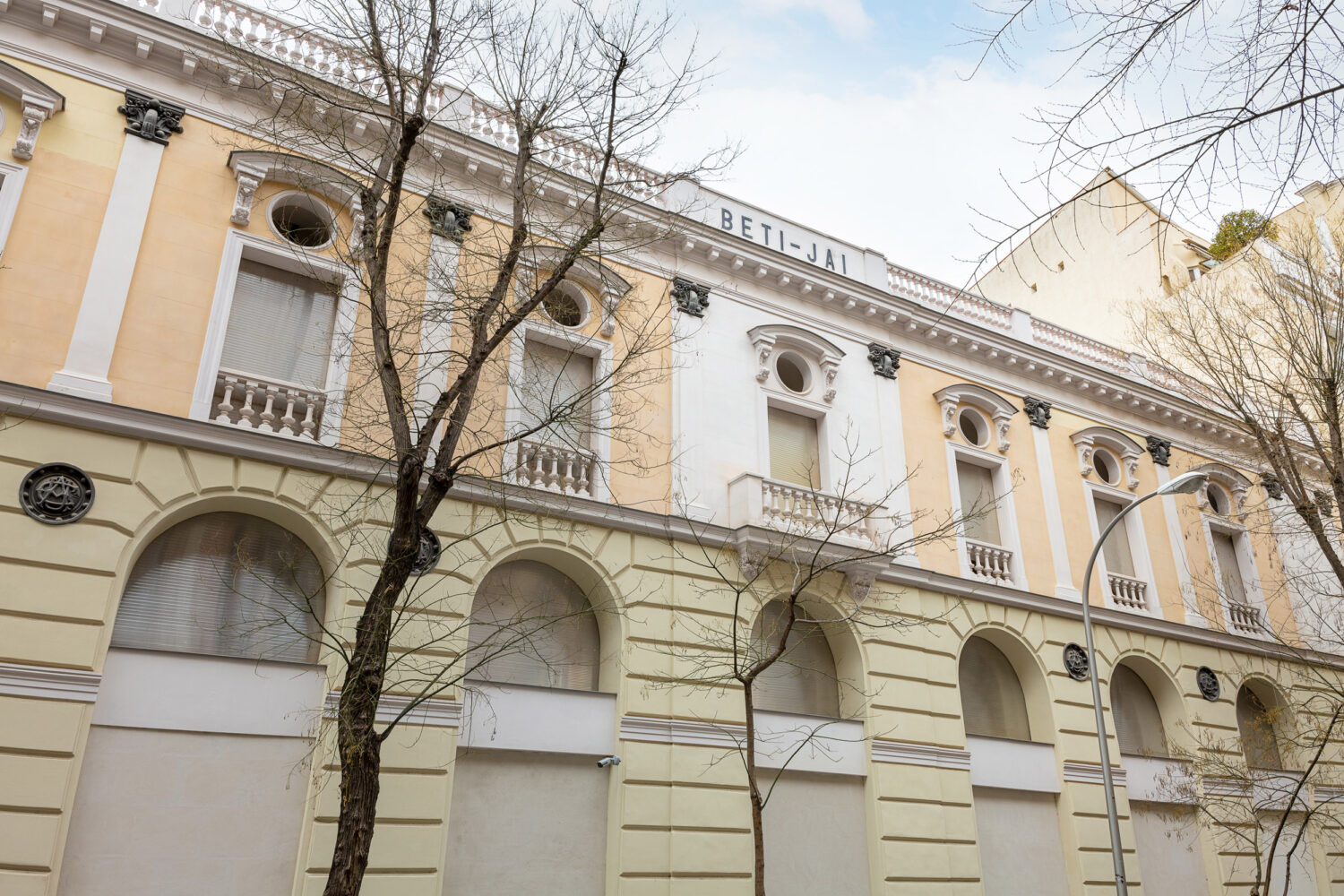 Beti Jai, ubicado en la calle del Marqués del Riscal, 7 (barrio de Almagro, distrito de Chamberí), fue uno de los principales escenarios de la pelota vasca en Madrid. Joaquín Rucoba lo diseñó en 1894, combinando elementos neomudéjares y estructuras de hierro típicas del siglo XIX. Su graderío curvo y la fachada ornamentada con arcos de herradura y ladrillo visto lo convierten en una pieza arquitectónica única.