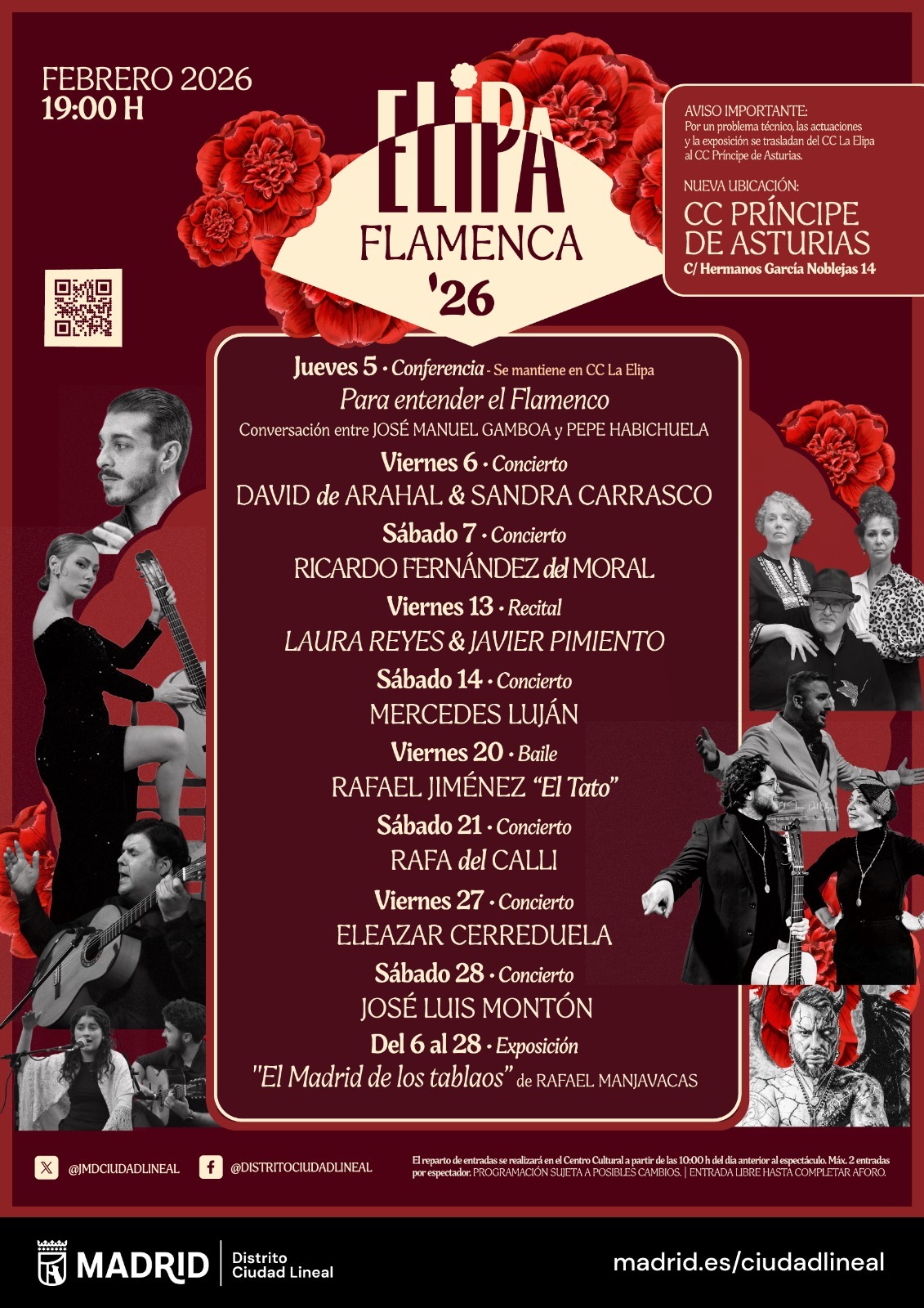 Dentro de los planes para quienes buscan actividades culturales para este fin de semana, el distrito de Ciudad Lineal vuelve a convertirse en punto de encuentro del arte jondo con Elipa Flamenca ’26, un ciclo que se desarrollará del 5 al 28 de febrero y con destacadas figuras del cante, la guitarra, el baile y la divulgación del flamenco.