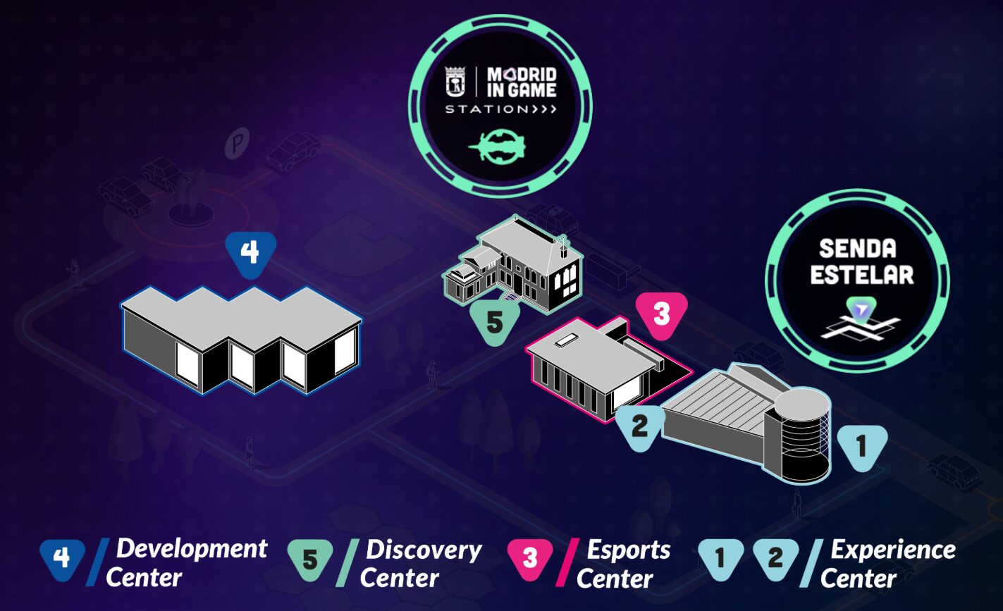 En un pabellón está el Experience Center, abierto al público, donde se organizan exposiciones, talleres, conferencias o eventos; en otro se ubica el Esports Center, centro de alto rendimiento deportivo de los deportes electrónicos que dispone de zonas de entrenamiento de uso público para profesionalizar la industria competitiva; y en un tercero se encuentra el Development Center. En este último se desarrolla el meollo del programa de emprendimiento de Madrid in Game, se acoge a las startups con proyectos en preincubación, incubación y aceleración, y se dispone de laboratorios equipados con el hardware más puntero en realidad virtual (VR), realidad aumentada (AR), vídeo y sonido.
