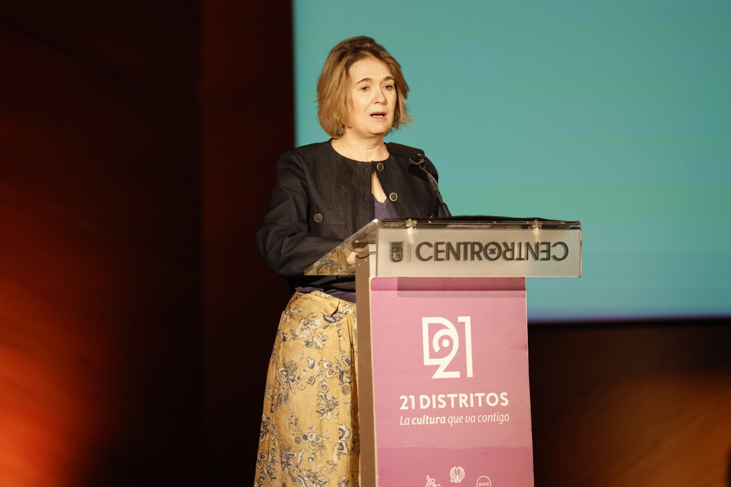 La delegada de Cultura, Turismo y Deporte, Marta Rivera de la Cruz, ha presentado esta mañana en CentroCentro la programación de otoño de 21 DISTRITOS, que desplegará en los próximos meses más de un centenar de propuestas artísticas con música, teatro, circo, danza, títeres, exposiciones, puestas en escena, encuentros y actividades formativas y de creación colectiva. Una oferta cultural que ofrecerá contenidos pensando en todos los públicos y con un firme compromiso con la accesibilidad, la diversidad, la inclusión y la sostenibilidad. Todas las actividades son de acceso gratuito y se desarrollarán en centros culturales, bibliotecas y espacios al aire libre.