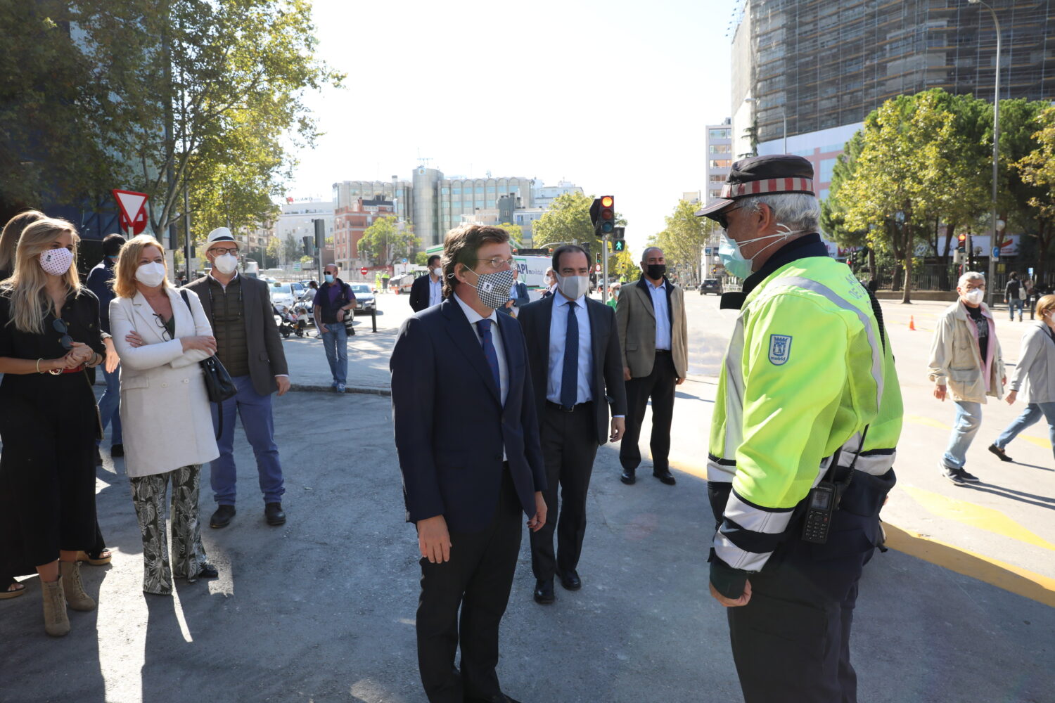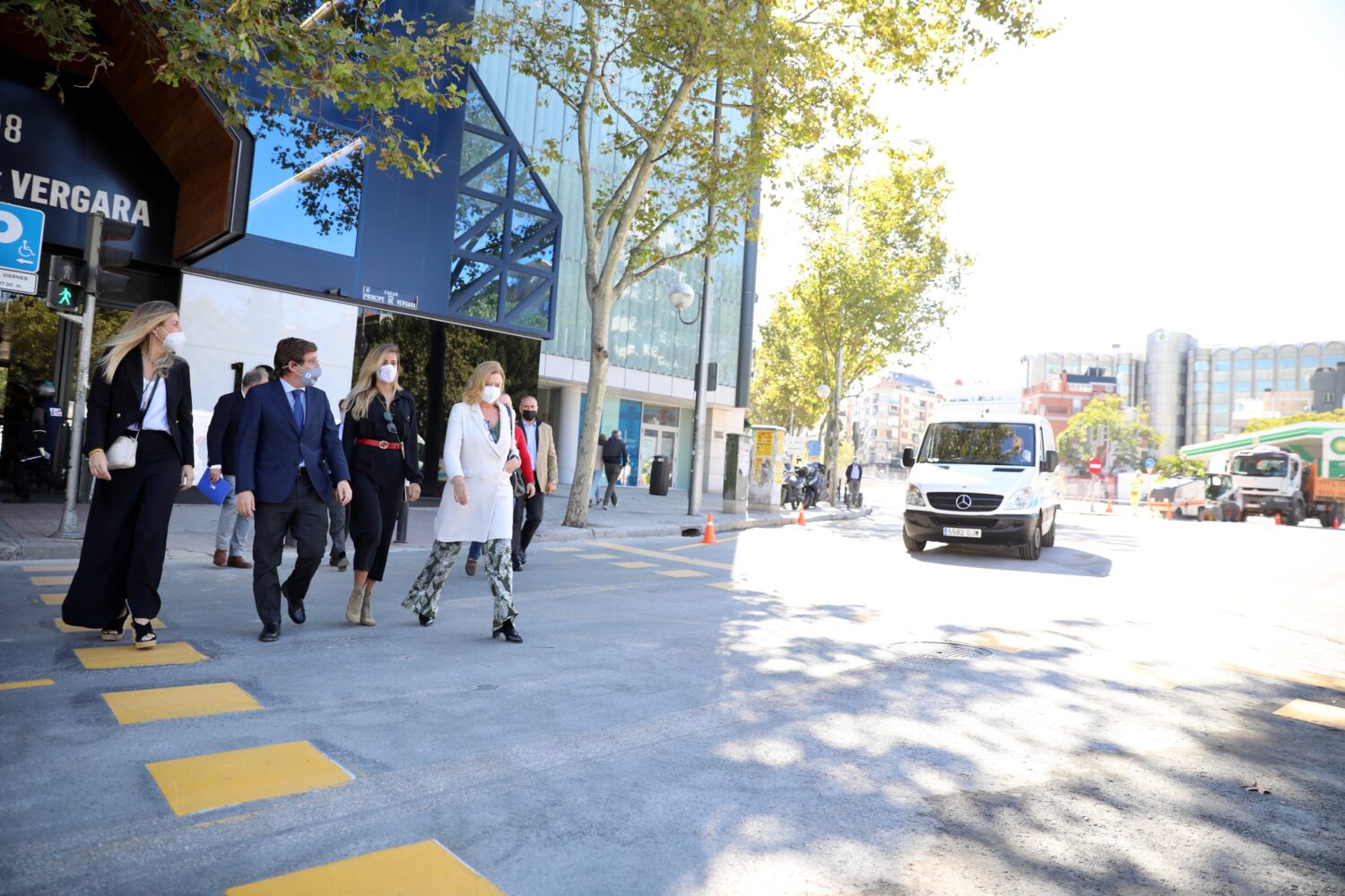 Visita del alcalde al entorno del puente de Joaquín Costa con motivo de la reapertura al tráfico de la calle Príncipe de Vergara en su intersección con Francisco Silvela
