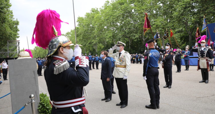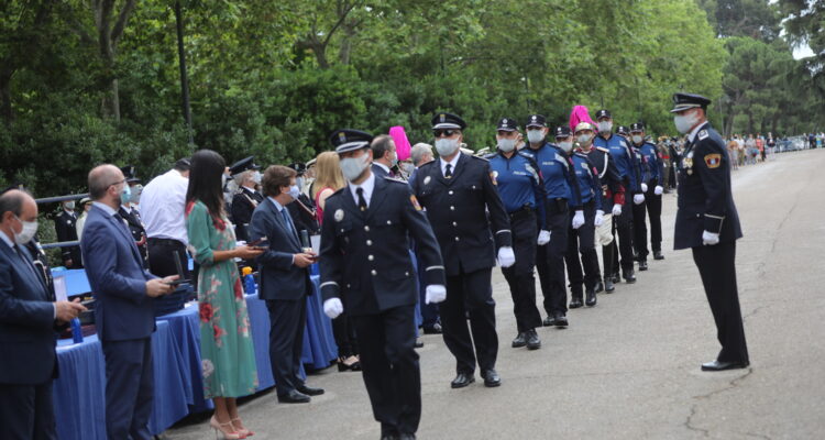 El alcalde ha estado acompañado en la presidencia del acto por la vicealcaldesa, Begoña Villacís; la delegada de Seguridad y Emergencias y portavoz municipal, Inmaculada Sanz; el comisario general de la Policía Municipal, Teodoro Pérez; y el director general del cuerpo, Pablo Enrique Rodríguez, así como por el presidente de la Asamblea de Madrid, Juan Trinidad; el delegado del Gobierno, José Manuel Franco, y el presidente del Tribunal Superior de Justicia de Madrid, Celso Rodríguez.
