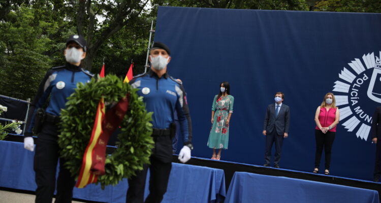 El alcalde ha iniciado su discurso con un especial recuerdo para los tres policías municipales fallecidos en acto de servicio durante la crisis sanitaria por la COVID-19 y ha destacado el deseo de “que su memoria nos impulse a ganar ese futuro para la ciudad de Madrid y construir una ciudad mejor sin olvidar el sacrificio que han protagonizado”.