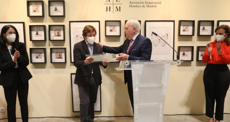 El alcalde de Madrid, José Luis Martínez-Almeida, ha agradecido al sector hotelero el reconocimiento que la Asociación de Empresarios Hoteleros de Madrid (AEHM) ha entregado hoy al Ayuntamiento de Madrid por su apoyo a empresas y trabajadores de los alojamientos hoteleros durante los meses en los que la pandemia sumió a la industria turística en una grave crisis.