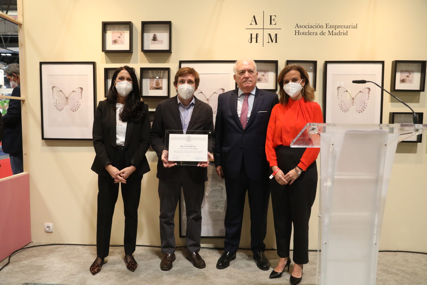 El alcalde de Madrid, José Luis Martínez-Almeida, ha agradecido al sector hotelero el reconocimiento que la Asociación de Empresarios Hoteleros de Madrid (AEHM) ha entregado hoy al Ayuntamiento de Madrid por su apoyo a empresas y trabajadores de los alojamientos hoteleros durante los meses en los que la pandemia sumió a la industria turística en una grave crisis.