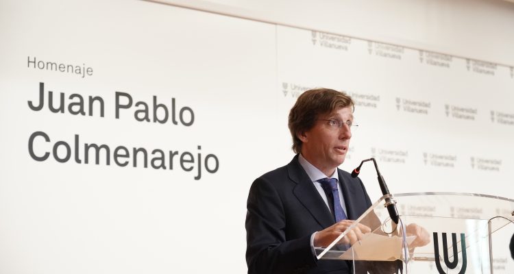 El alcalde de Madrid, José Luis Martínez-Almeida, ha participado este lunes, Día Mundial de la Radio, en el homenaje que la Universidad Villanueva ha rendido al periodista Juan Pablo Colmenarejo en el primer aniversario de su fallecimiento. El acto ha consistido en el descubrimiento de una placa con el nombre del informador que, desde ahora, denominará a los nuevos estudios de radio de la universidad en la que Colmenarejo era profesor.