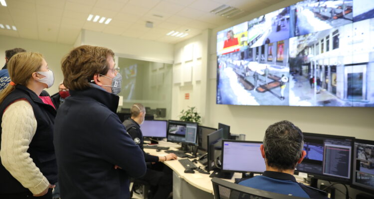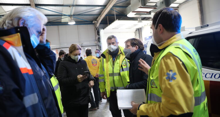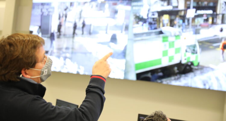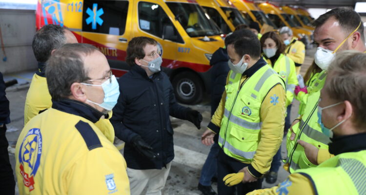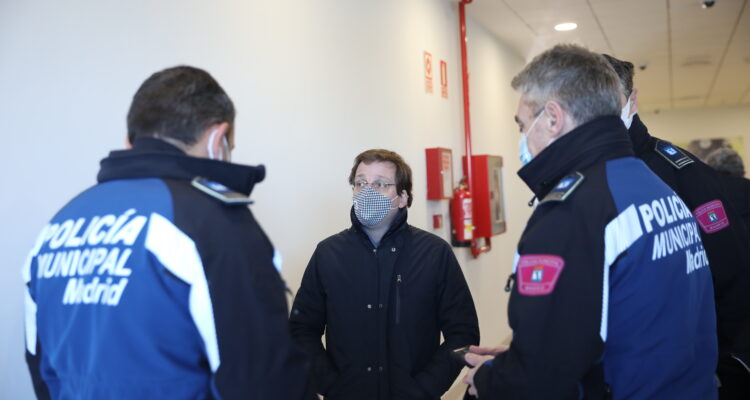 El alcalde de Madrid, José Luis Martínez-Almeida, junto a la delegada del Área de Portavoz, Seguridad y Emergencias, Inmaculada Sanz, ha visitado esta mañana la Base 0 del SAMUR-Protección Civil, así como el Centro Integrado de Señales de Vídeo (CISEVI) de la Policía Municipal. Almeida ha agradecido el trabajo realizado por todos los servicios municipales de emergencias (Policía Municipal, Bomberos Madrid y SAMUR-Protección Civil) desde que comenzó el temporal de nieve Filomena y ha evaluado el avance en los trabajos que se continúan llevando a cabo para que la ciudad recupere la normalidad.