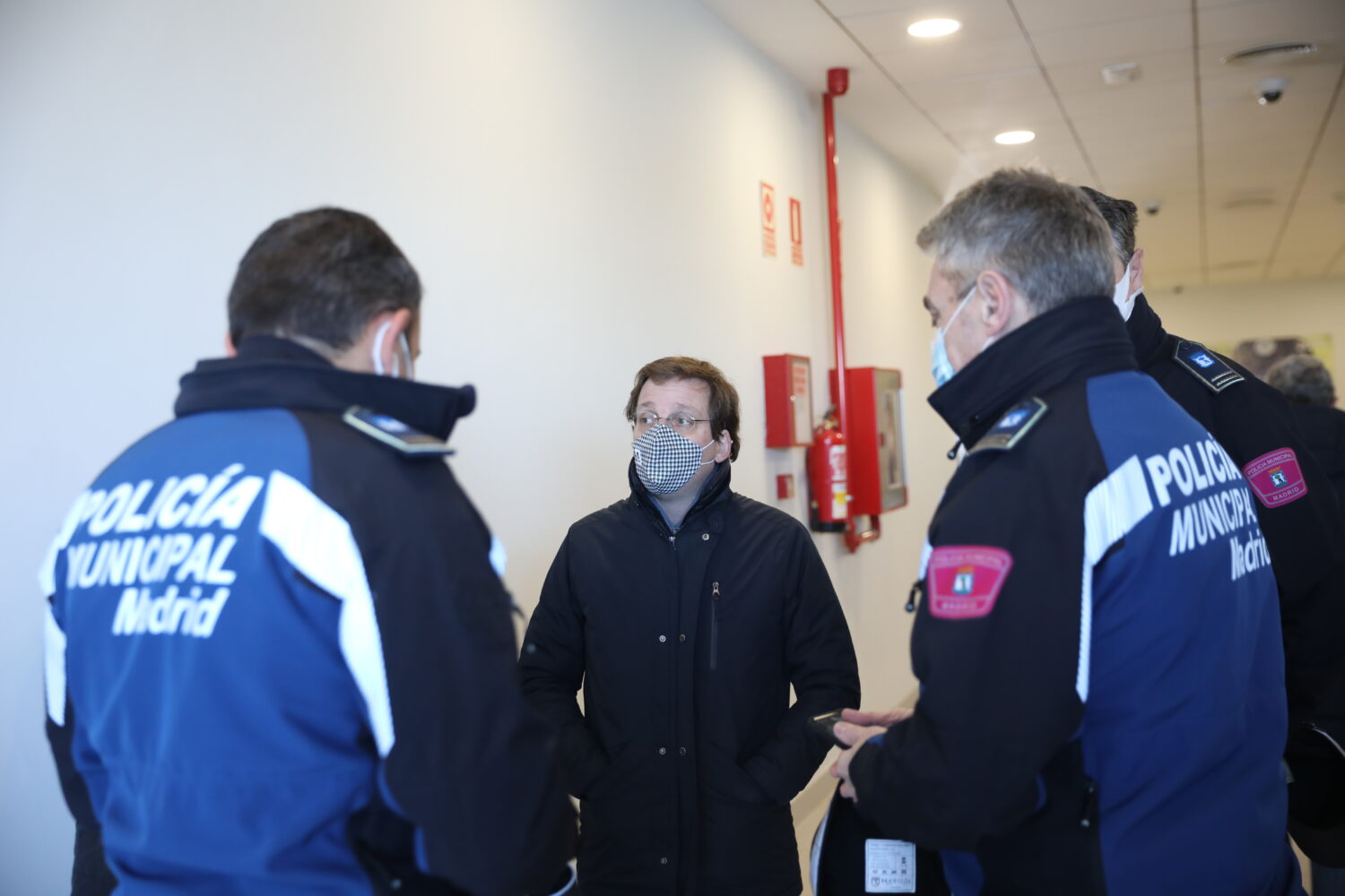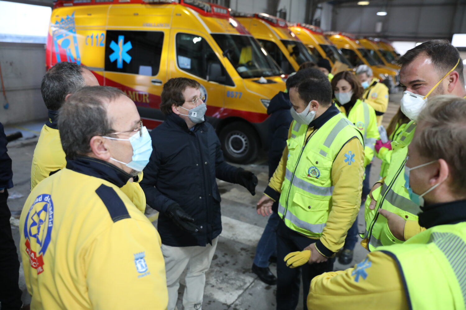 El alcalde de Madrid, José Luis Martínez-Almeida, junto a la delegada del Área de Portavoz, Seguridad y Emergencias, Inmaculada Sanz, ha visitado esta mañana la Base 0 del SAMUR-Protección Civil, así como el Centro Integrado de Señales de Vídeo (CISEVI) de la Policía Municipal. Almeida ha agradecido el trabajo realizado por todos los servicios municipales de emergencias (Policía Municipal, Bomberos Madrid y SAMUR-Protección Civil) desde que comenzó el temporal de nieve Filomena y ha evaluado el avance en los trabajos que se continúan llevando a cabo para que la ciudad recupere la normalidad.