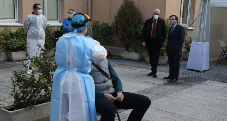 El alcalde de Madrid, José Luis Martínez-Almeida, ha visitado el Centro de Especialidades Médicas de Madrid Salud ubicado en la calle Montesa (distrito de Salamanca), donde ha agradecido el esfuerzo de los trabajadores de este organismo autónomo municipal tanto en la realización de test diagnósticos a los empleados del Ayuntamiento y demás actuaciones sanitarias motivadas por la pandemia como por su participación en la campaña de vacunación de la gripe de este año.