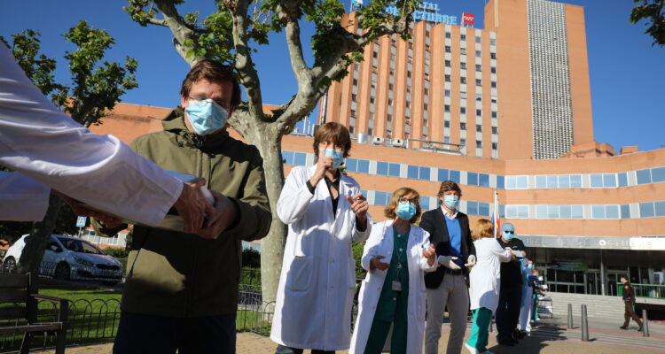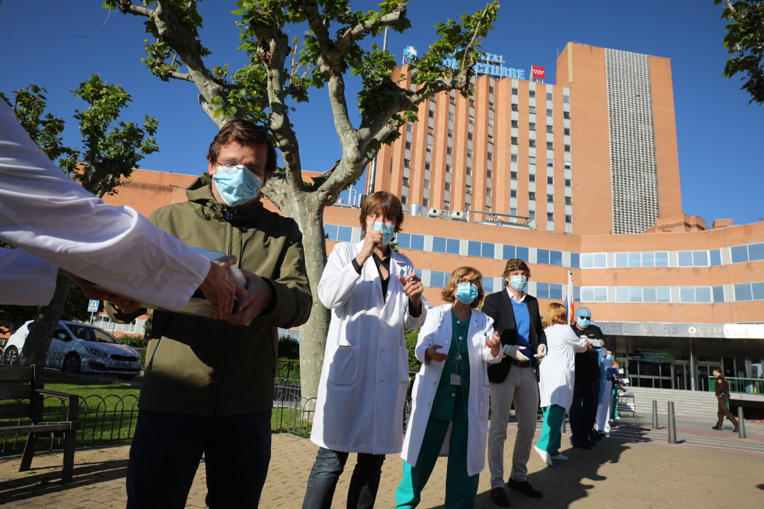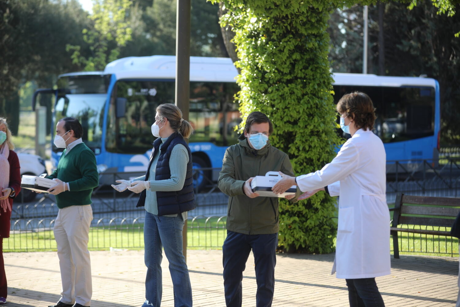 Tras comprobar en primera línea cómo se desarrolla este servicio especial, Almeida se ha sumado a la cadena humana que se ha formado a las puertas del centro para hacer llegar 3.200 sándwiches que el grupo de restauración Rodilla, junto a la Fundación Damm, ha donado a los profesionales sanitarios del Hospital 12 de Octubre. Esta iniciativa de Rodilla comenzó la pasada semana en diferentes hospitales de la región como gesto de agradecimiento a los sanitarios por su tarea y como una forma de contribuir a la lucha contra la pandemia.