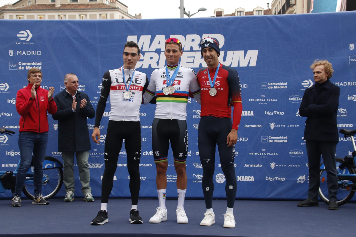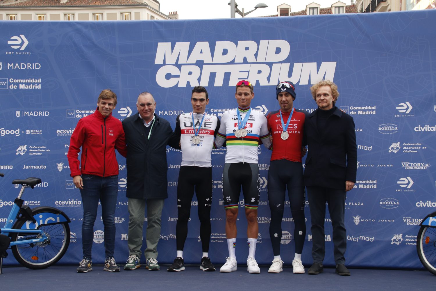 La celebración de la segunda edición de Madrid Criterium ha reunido hoy en la capital a algunos de los nombres más destacados del actual panorama ciclista mundial. Esta exhibición, que ya figura en el calendario de la Real Federación Española de Ciclismo, está patrocinada por la Empresa Municipal de Transportes (EMT) y en ella ha tenido un especial protagonismo el sistema público de bicicletas del Consistorio bicimad. Mathieu van der Poel se ha impuesto en este Criterium 2023 y Luis León Sánchez, en su despedida del ciclismo profesional, ha ganado la prueba eliminatoria.