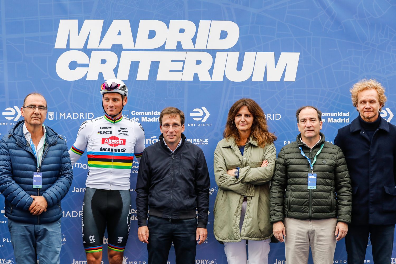 El alcalde de Madrid, Jose Luis Martínez-Almeida, y el delegado de Urbanismo, Medio Ambiente y Movilidad, Borja Carabante, han participado en esta prueba de exhibición que ha acogido la Gran Vía. Ambos han realizado el recorrido de reconocimiento de la prueba a bordo de una bicicleta de bicimad junto el actual campeón del mundo de ciclismo en ruta, Van der Poel, y el resto de participantes.