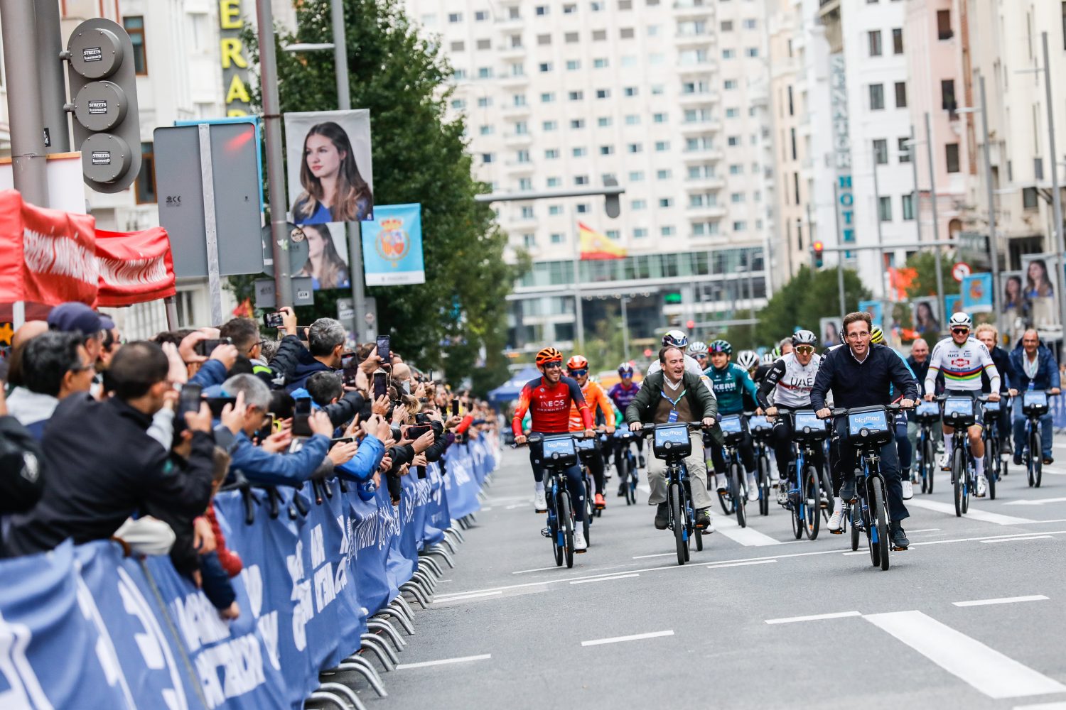 Cientos de madrileños han seguido a pie de calle este recorrido de 1.180 metros entre las intersecciones de las calles San Bernardo y Fuencarral. Un total de 40 corredores, entre profesionales y sub23, han tomado la salida, entre ellos, figuras nacionales como Juan Ayuso, Marc Soler, Juanpe López y, el campeón de España, Oier Lazkano.