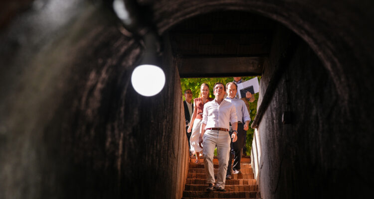 Almeida, Carabante y Levy durante la visita al refugio antiaéreo del parque del Retiro