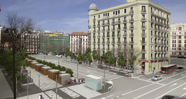 La actuación, cuya duración es de diez meses y prevé su finalización para la próxima primavera, dará continuidad a la intervención realizada en la plaza de Dalí en 2005 y supondrá la remodelación de una superficie de casi 11.000 m2 que, en estos momentos, aglutina una importante densidad de usos y circulaciones peatonales, así como la ubicación de dársenas de autobuses de la EMT y distintas actividades comerciales y de restauración.
