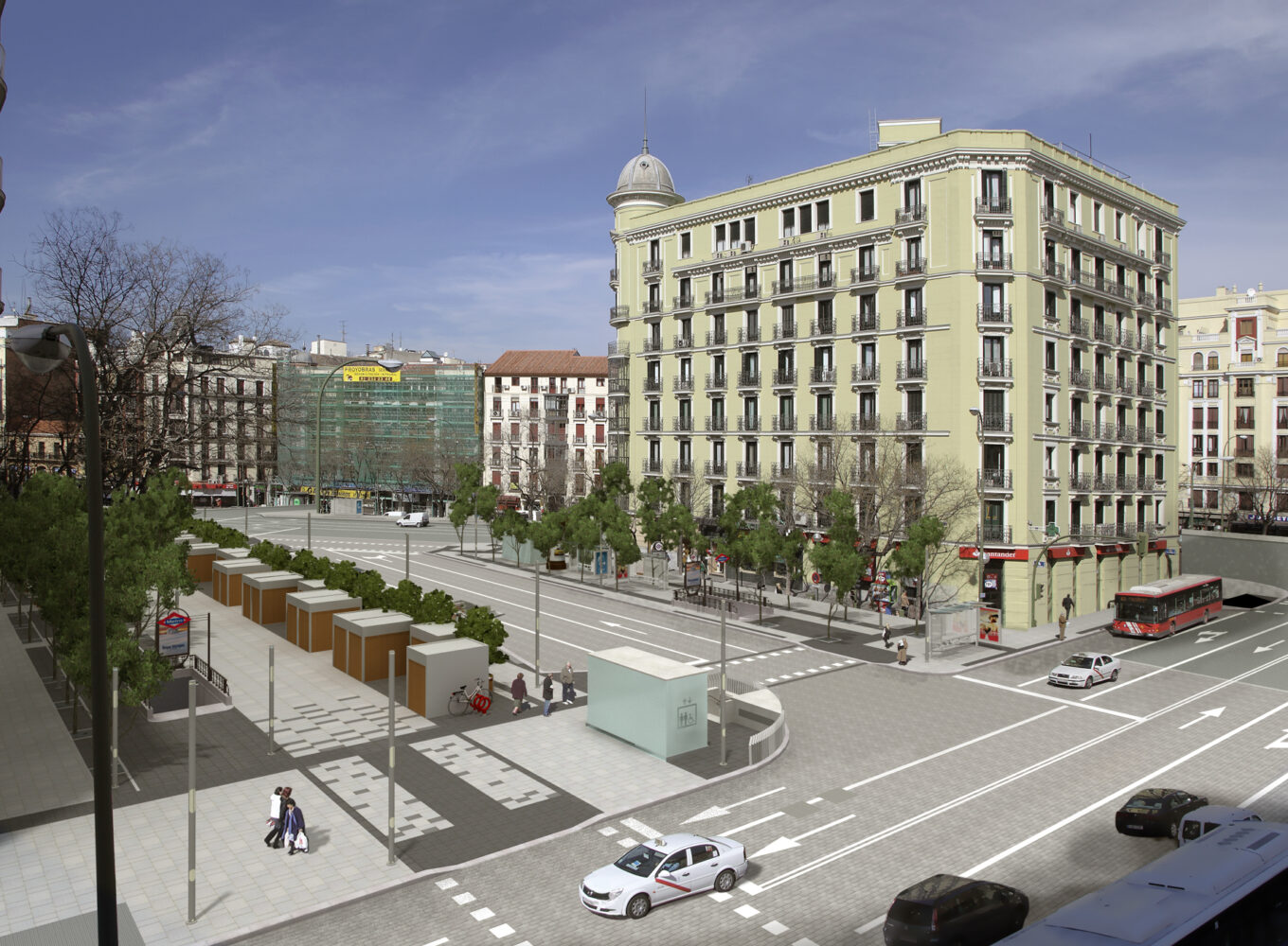 La actuación, cuya duración es de diez meses y prevé su finalización para la próxima primavera, dará continuidad a la intervención realizada en la plaza de Dalí en 2005 y supondrá la remodelación de una superficie de casi 11.000 m2 que, en estos momentos, aglutina una importante densidad de usos y circulaciones peatonales, así como la ubicación de dársenas de autobuses de la EMT y distintas actividades comerciales y de restauración.