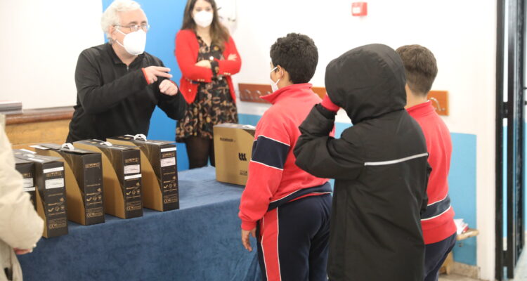 Durante el acto, que ha tenido lugar en el Centro Educativo Ponce de León, el alcalde ha hecho entrega a alumnos de primaria, secundaria y formación profesional de los dispositivos con los que podrán continuar las clases en caso de un nuevo confinamiento, tener acceso a la educación en igualdad de oportunidades y disponer de un recurso para acceder al ecosistema digital.