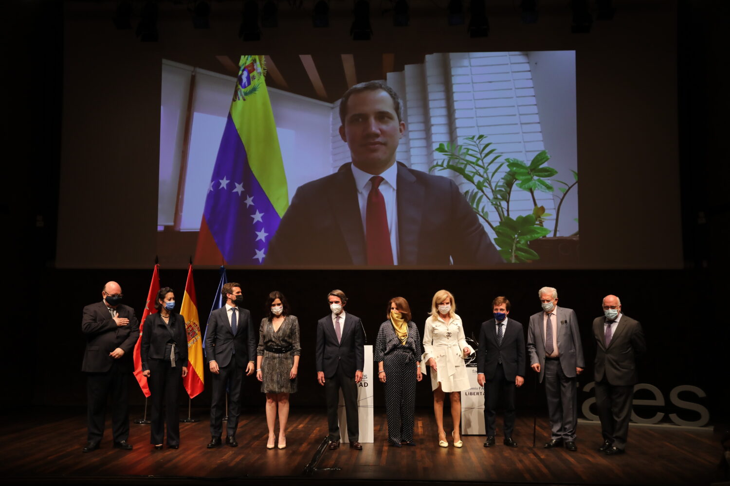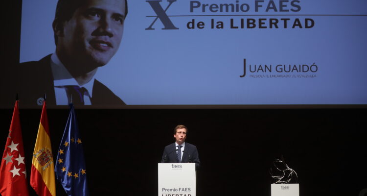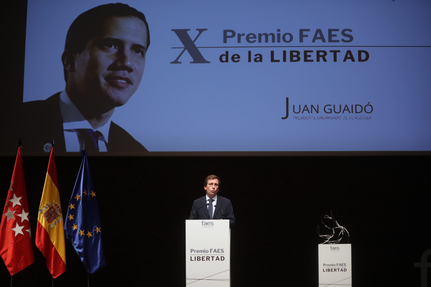 El alcalde de Madrid, José Luis Martínez-Almeida, ha transmitido al presidente encargado de Venezuela «su aliento, respaldo y apoyo desde la capital de España, la capital de Iberoamérica en Europa, una ciudad que ha convertido la libertad en su principal divisa”, durante el acto de entrega del X Premio FAES a la Libertad a Juan Guaidó por parte del expresidente del Gobierno y presidente de la Fundación para el Análisis y los Estudios Sociales, José María Aznar. Un acto en el que también ha participado la presidenta de la Comunidad de Madrid, Isabel Díaz Ayuso.
