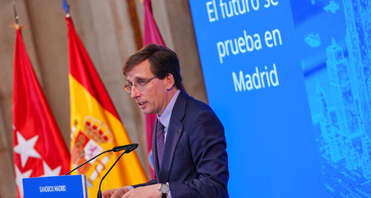 El alcalde de Madrid, José Luis Martínez Almeida, acompañado por el concejal delegado de Innovación y Emprendimiento, Ángel Niño, ha presentado esta mañana Sandbox Madrid, una iniciativa del Ayuntamiento que convierte la ciudad en un entorno controlado donde probar proyectos tecnológicos e innovadores en condiciones reales.