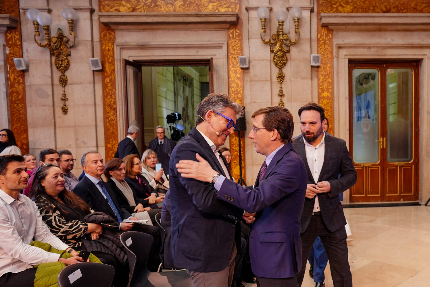 Almeida, con Niño y Vidal, en la presentación de Sandbox Madrid, celebrada en la Casa de la Villa