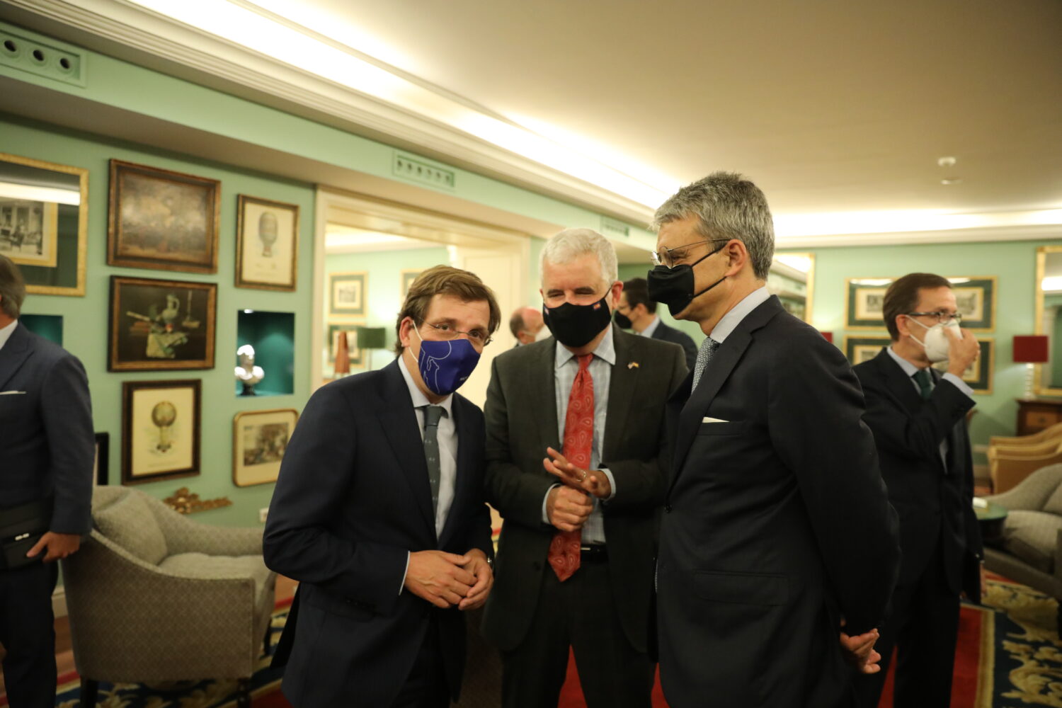 El alcalde de Madrid, José Luis Martínez-Almeida, ha participado en un almuerzo coloquio con miembros de la Cámara de Comercio de EE.UU. en España, entre los que se encontraban el presidente de esta institución, Jaime Malet, junto al responsable comercial de la embajada de los Estados Unidos en España, Conrad Tribble.