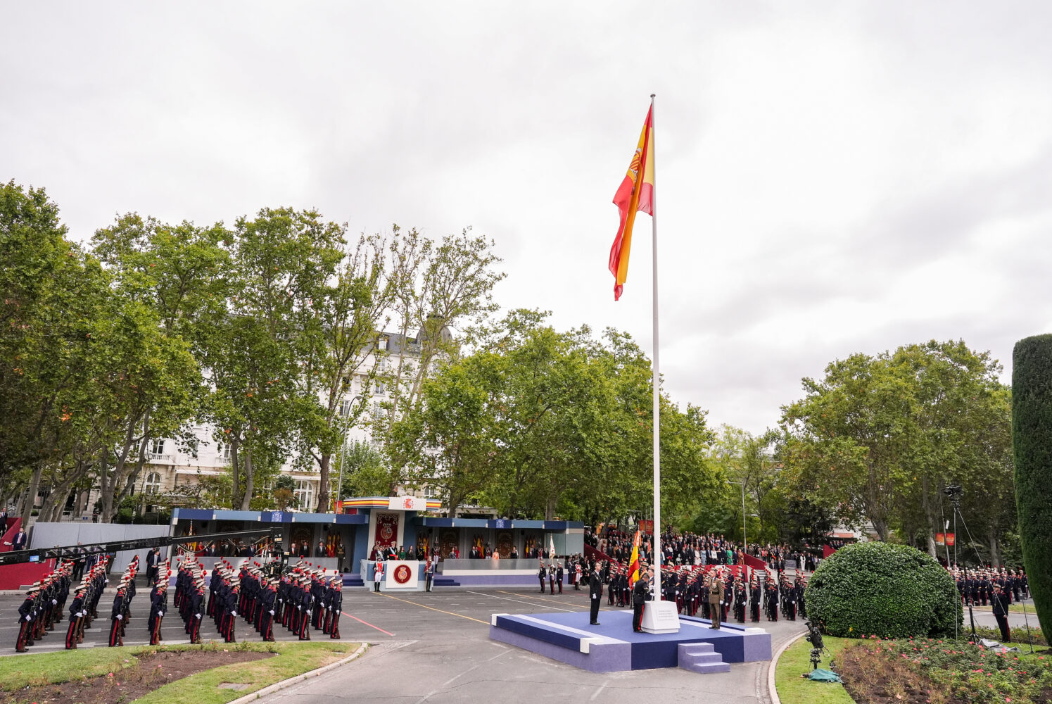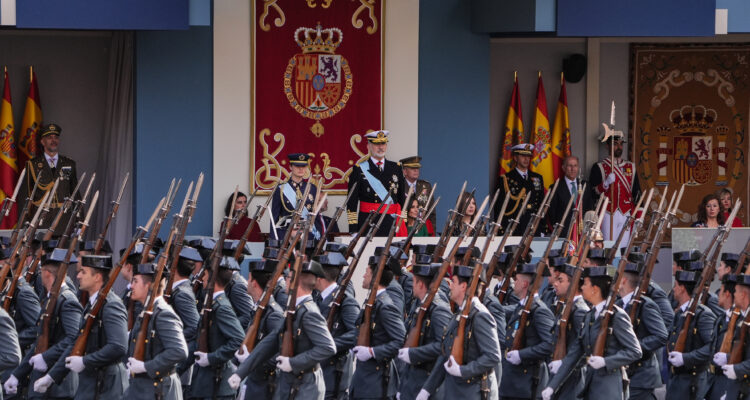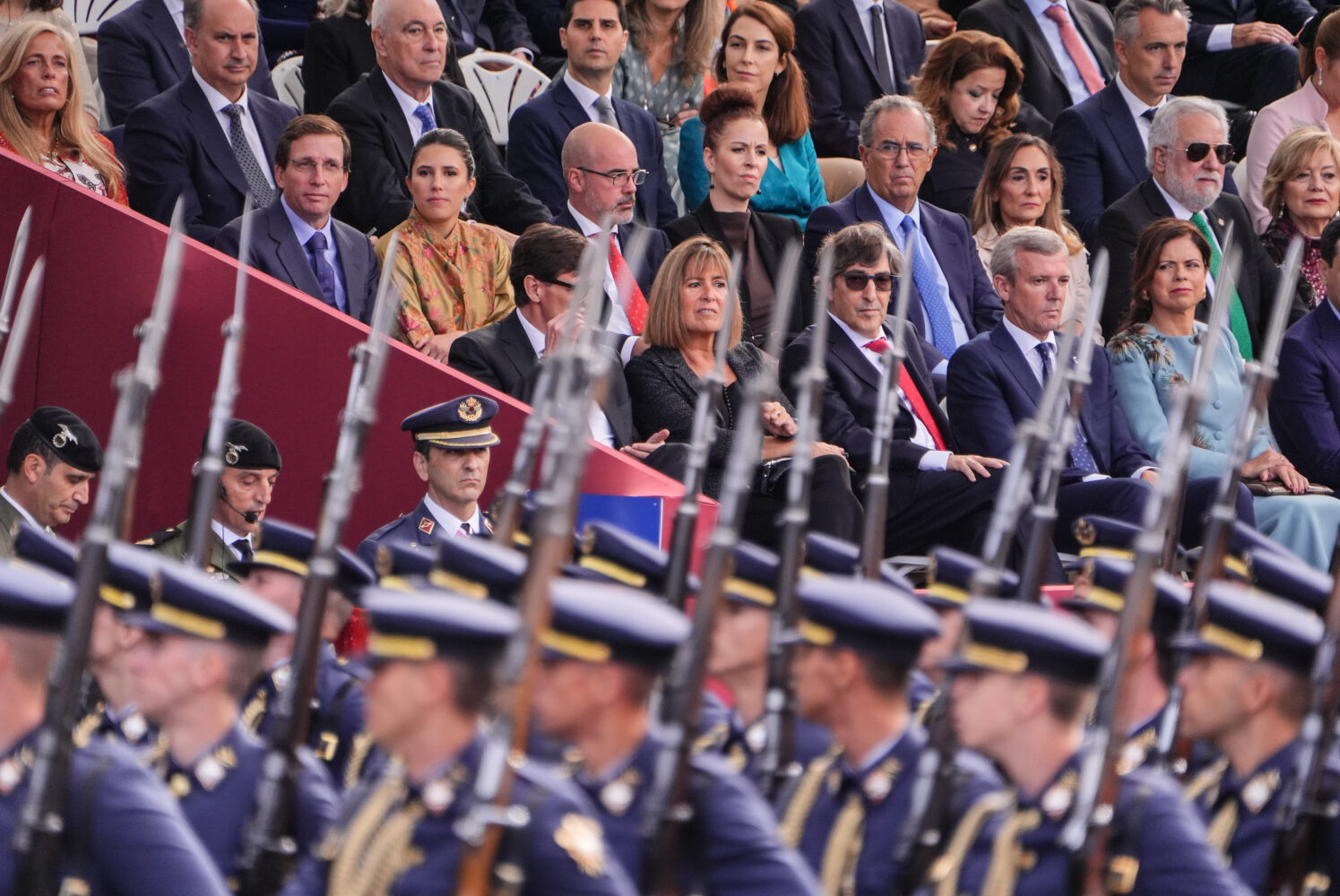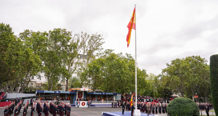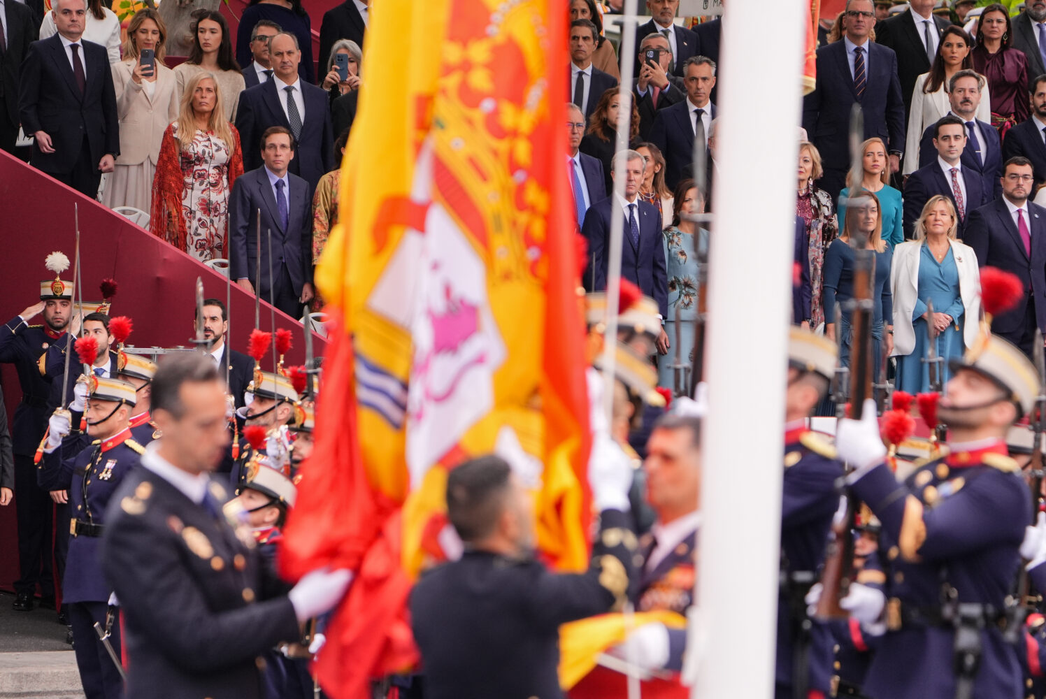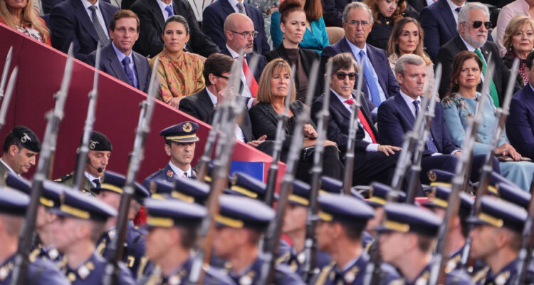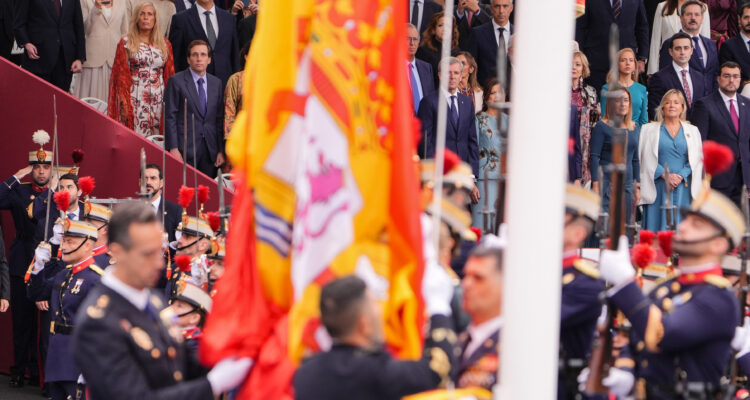 El alcalde de Madrid, José Luis Martínez-Almeida, ha asistido esta mañana al acto de homenaje a la bandera nacional y al desfile militar que se ha celebrado con motivo del Día de la Fiesta Nacional, presidido por los reyes.