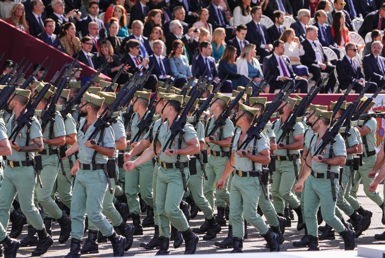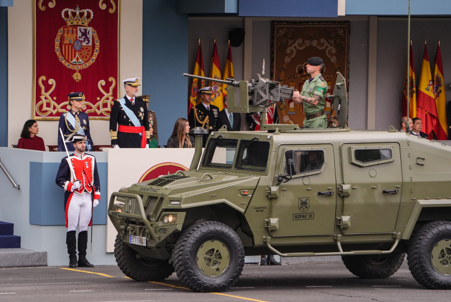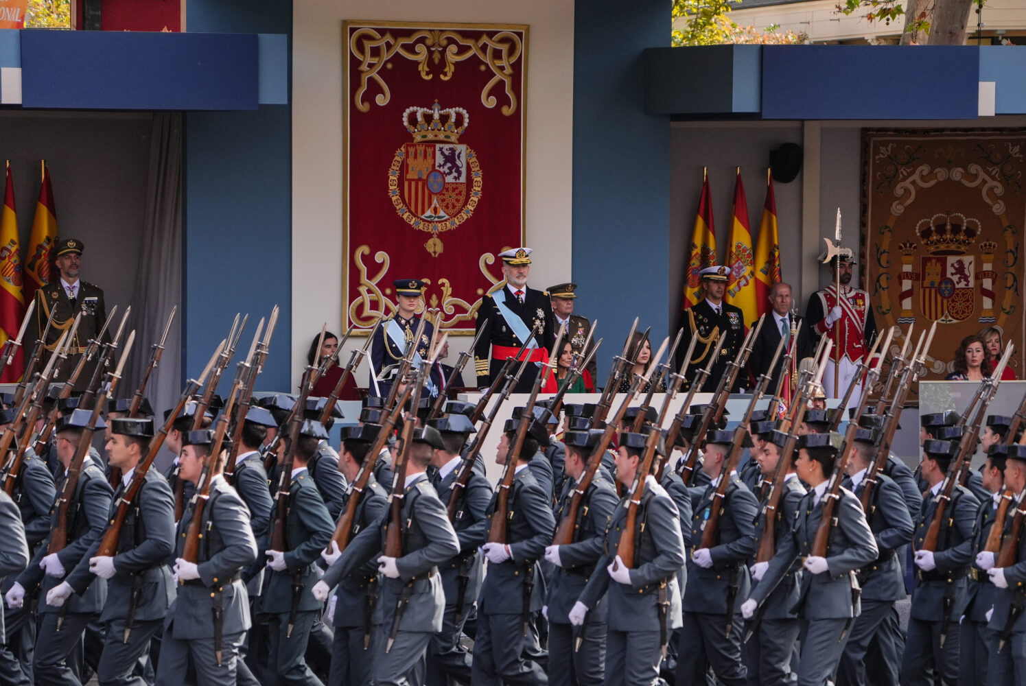 En esta edición, han participado 3.847 efectivos de las Fuerzas Armadas, Guardia Civil y Policía Nacional. En el aire, se han desplegado 45 aviones y 29 helicópteros y en el desfile motorizado han participado 123 vehículos y 39 motocicletas, así como un total de 229 caballos y seis perros.