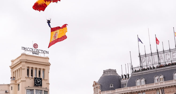El desfile ha partido desde la glorieta del Emperador Carlos V, en Atocha y, tras recorrer el paseo del Prado, la plaza de Cibeles y el paseo de Recoletos, ha concluido en la plaza de Colón. El salto paracaidista ha dado paso al izado de la bandera nacional en homenaje a los caídos.