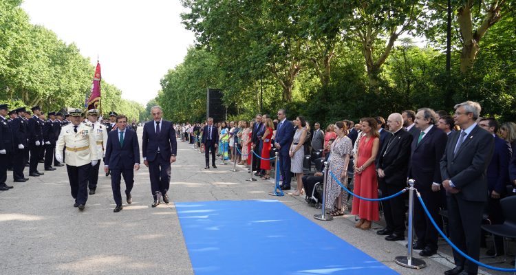 La Policía Municipal de Madrid ha celebrado hoy la festividad de su patrón, San Juan Bautista, en un acto solemne celebrado en el parque de El Retiro presidido por el alcalde de la ciudad, José Luis Martínez-Almeida, acompañado por la vicealcaldesa, delegada de Seguridad y Emergencias y portavoz de Ayuntamiento, Inmaculada Sanz.