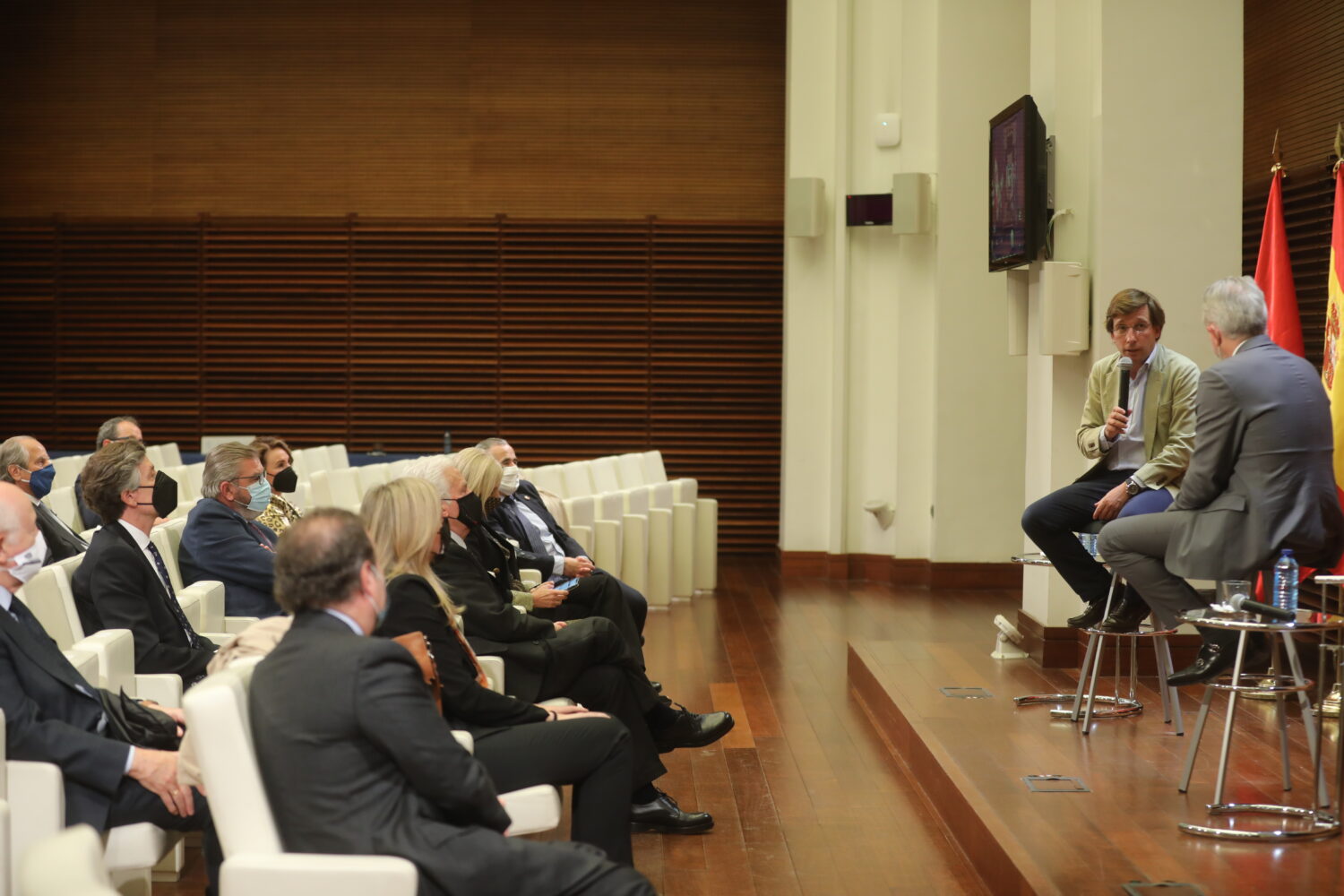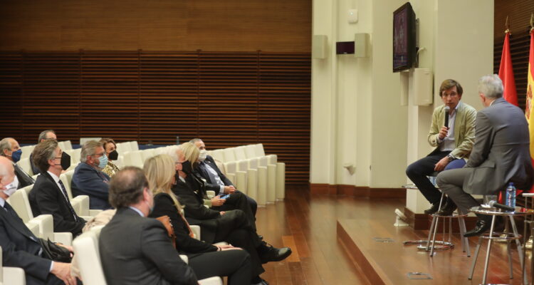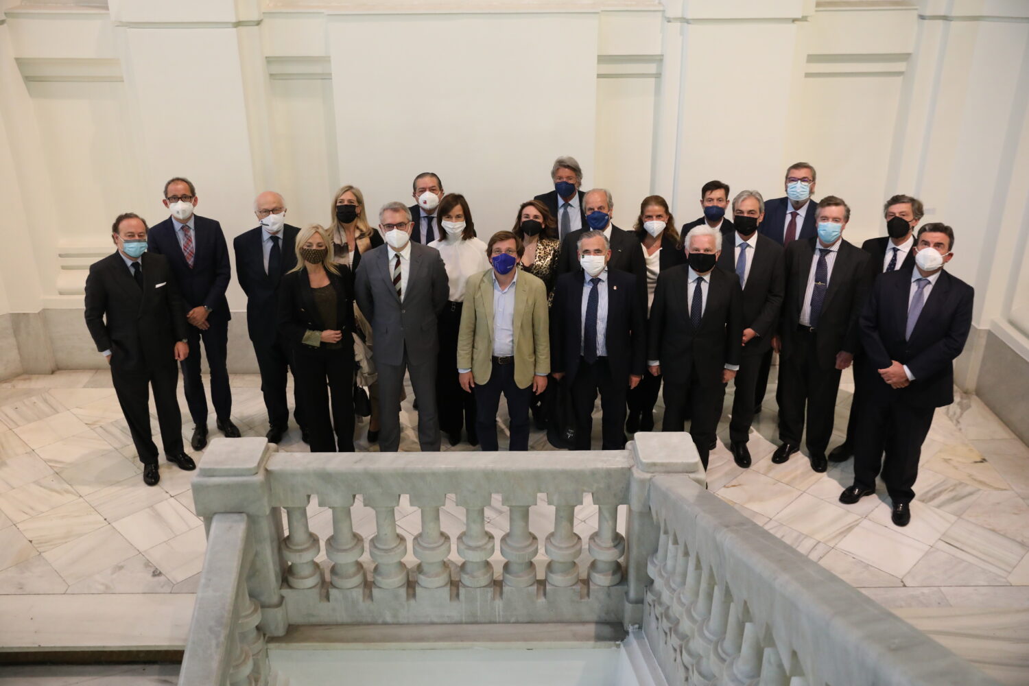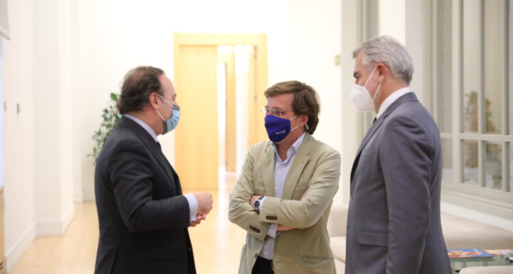 El alcalde de Madrid, José Luis Martínez-Almeida, ha mantenido esta tarde una reunión con los presidentes de las diferentes asociaciones territoriales de Empresa Familiar, vinculadas al Instituto de la Empresa Familiar y su presidente y director general ejecutivo, Marc Puig y José Luis Blanco, respectivamente, con quienes ha compartido las iniciativas llevadas a cabo por el Ayuntamiento de Madrid para hacer frente a los efectos de la pandemia, especialmente en el ámbito empresarial. Entre ellas, ha destacado los Acuerdos de la Villa firmados por unanimidad de los grupos municipales en julio del pasado año, las políticas fiscales de reducción de impuestos adoptadas por el Consistorio y la colaboración público-privada que dio lugar a Madrid Futuro como muestra del esfuerzo colectivo de la sociedad madrileña.