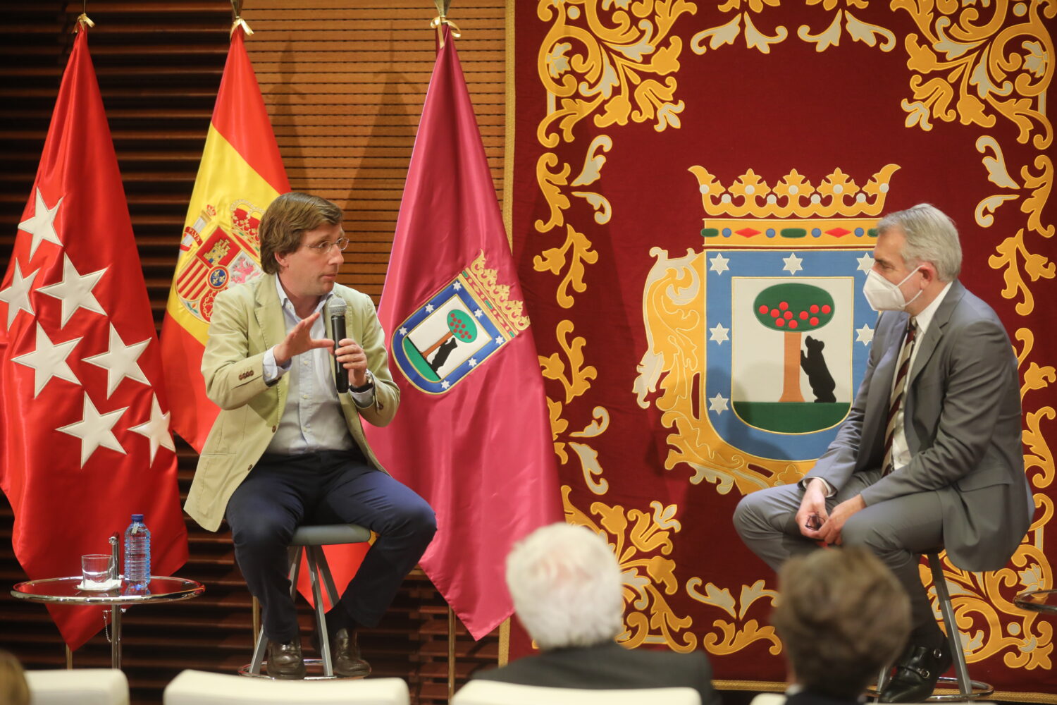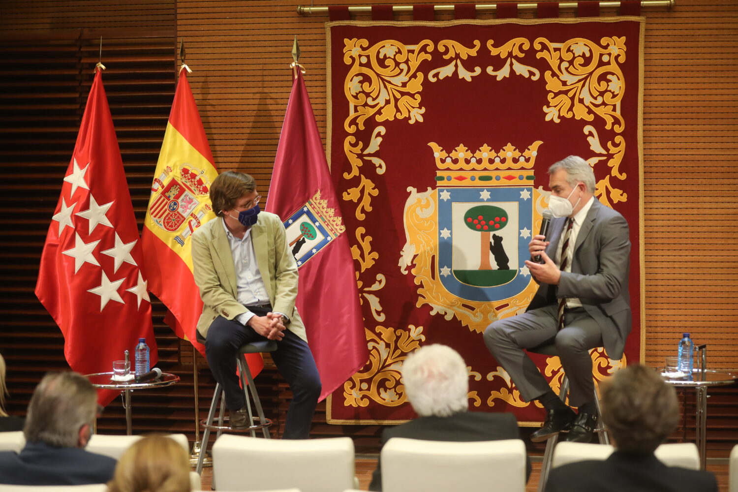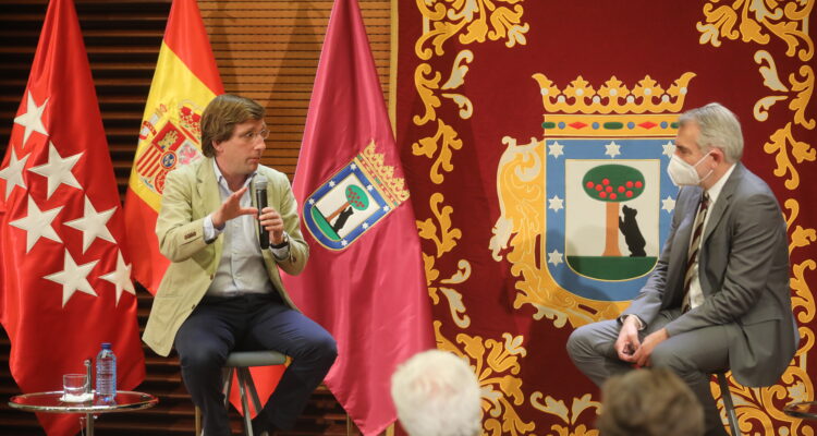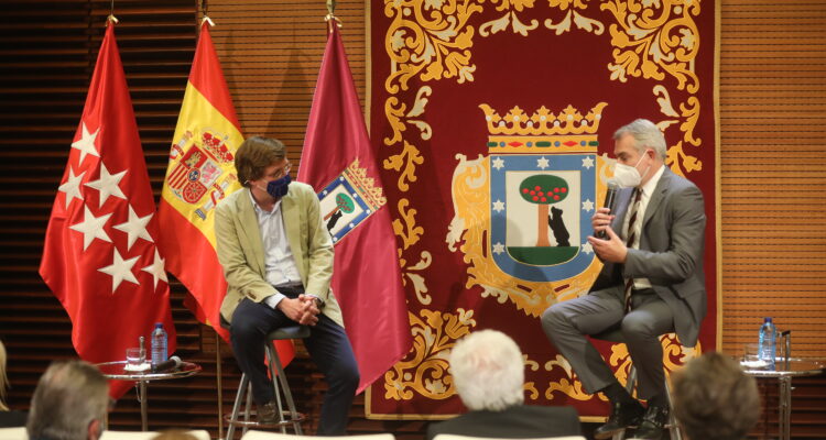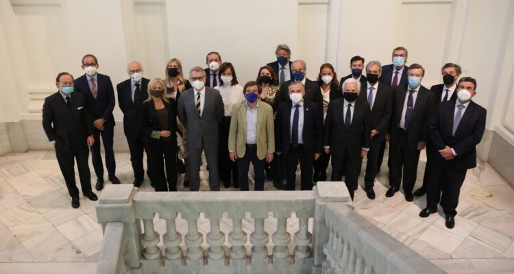 El alcalde de Madrid, José Luis Martínez-Almeida, ha mantenido esta tarde una reunión con los presidentes de las diferentes asociaciones territoriales de Empresa Familiar, vinculadas al Instituto de la Empresa Familiar y su presidente y director general ejecutivo, Marc Puig y José Luis Blanco, respectivamente, con quienes ha compartido las iniciativas llevadas a cabo por el Ayuntamiento de Madrid para hacer frente a los efectos de la pandemia, especialmente en el ámbito empresarial. Entre ellas, ha destacado los Acuerdos de la Villa firmados por unanimidad de los grupos municipales en julio del pasado año, las políticas fiscales de reducción de impuestos adoptadas por el Consistorio y la colaboración público-privada que dio lugar a Madrid Futuro como muestra del esfuerzo colectivo de la sociedad madrileña.