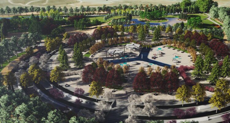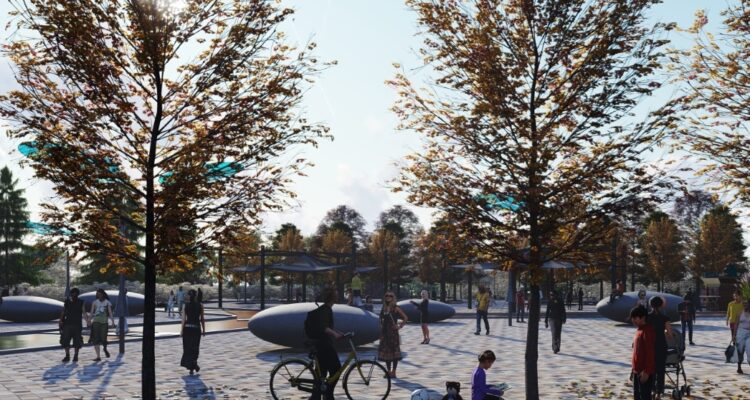 En la zona urbana estarán la plaza del Agua, el Bosque de los Sentidos y el Árbol del Agua. La plaza del Agua será la única pavimentada, con criterios de drenaje urbano sostenible y se podrá utilizar como punto de reunión para diversas actividades o proyección de cine al aire libre.