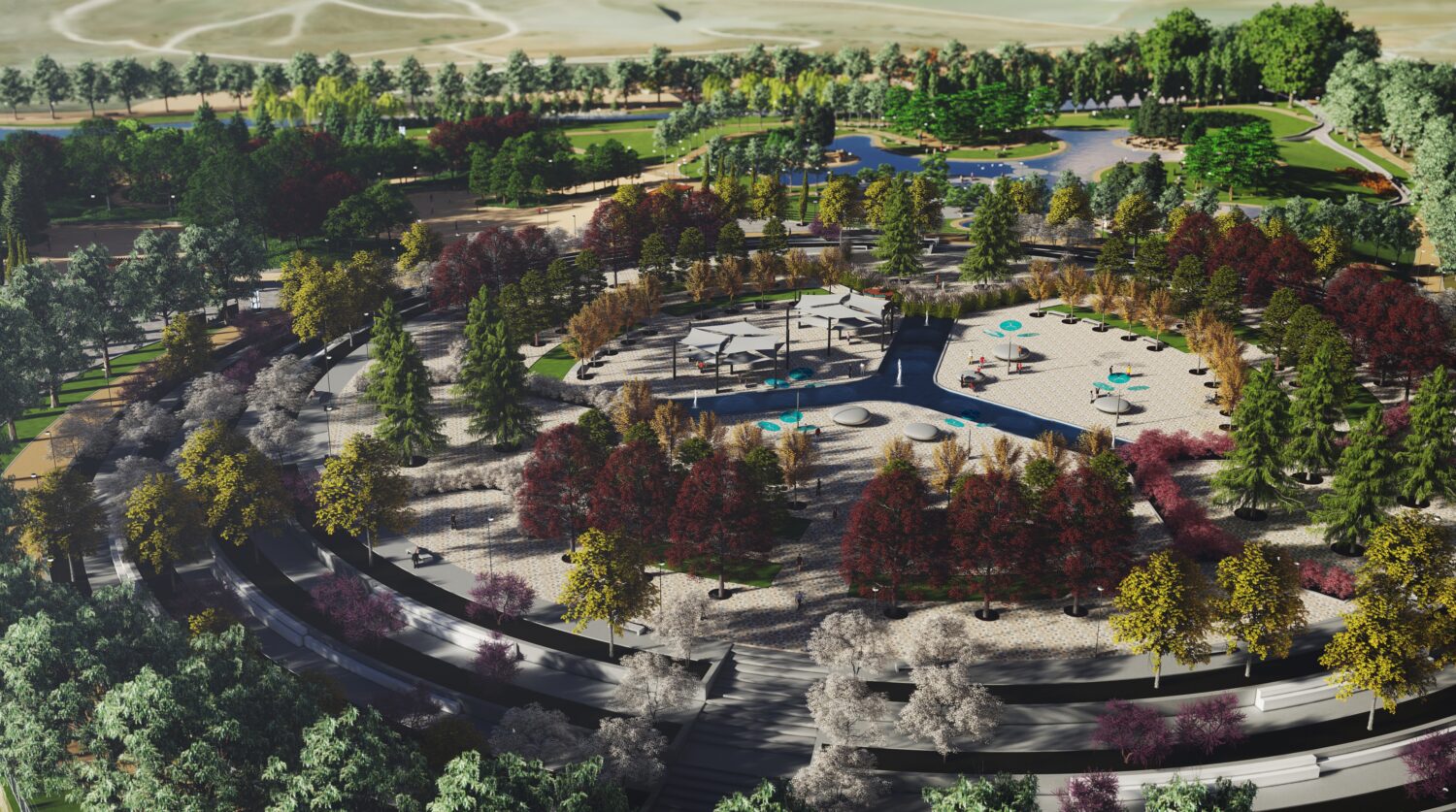 En la zona urbana estarán la plaza del Agua, el Bosque de los Sentidos y el Árbol del Agua. La plaza del Agua será la única pavimentada, con criterios de drenaje urbano sostenible y se podrá utilizar como punto de reunión para diversas actividades o proyección de cine al aire libre.