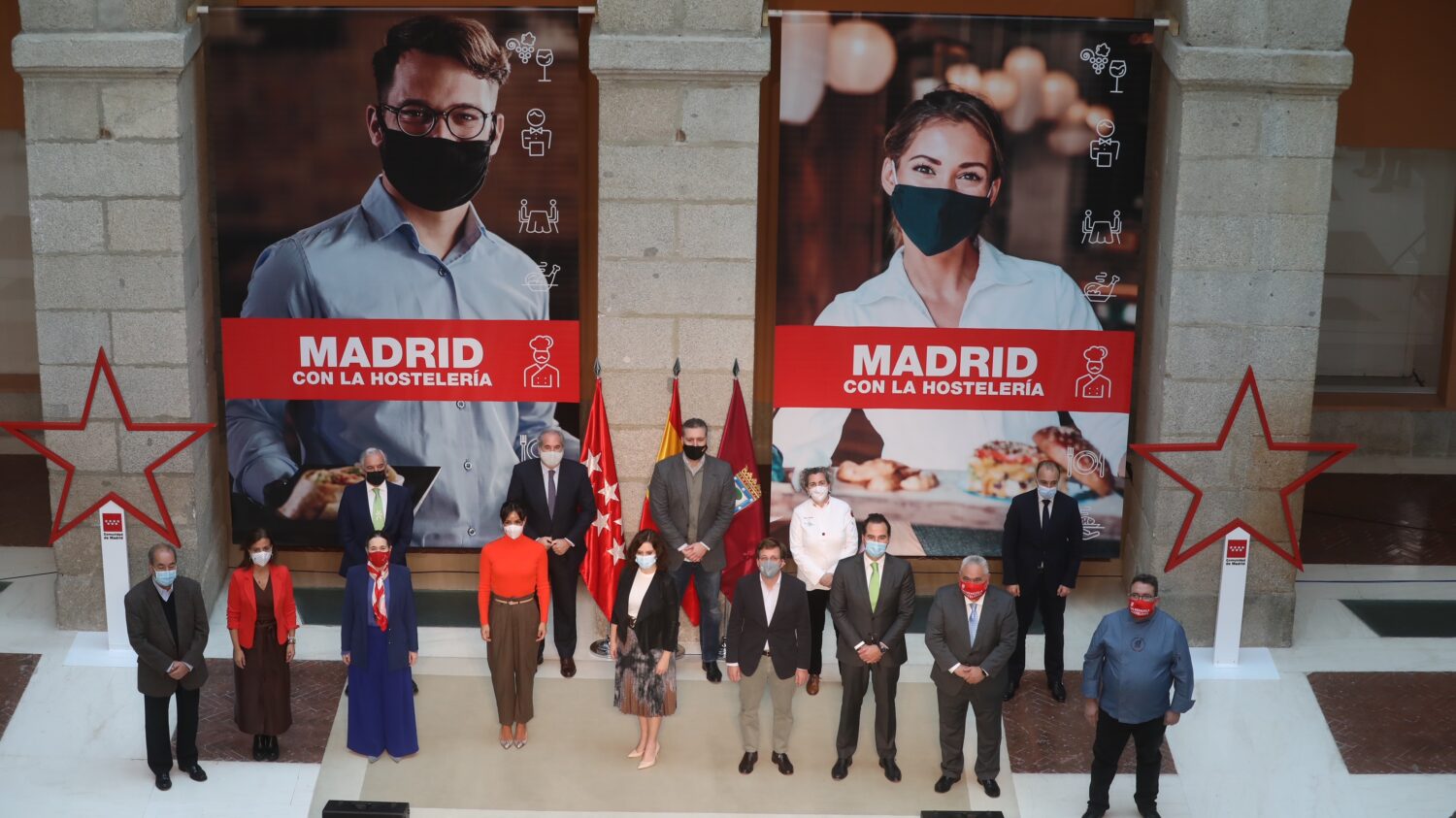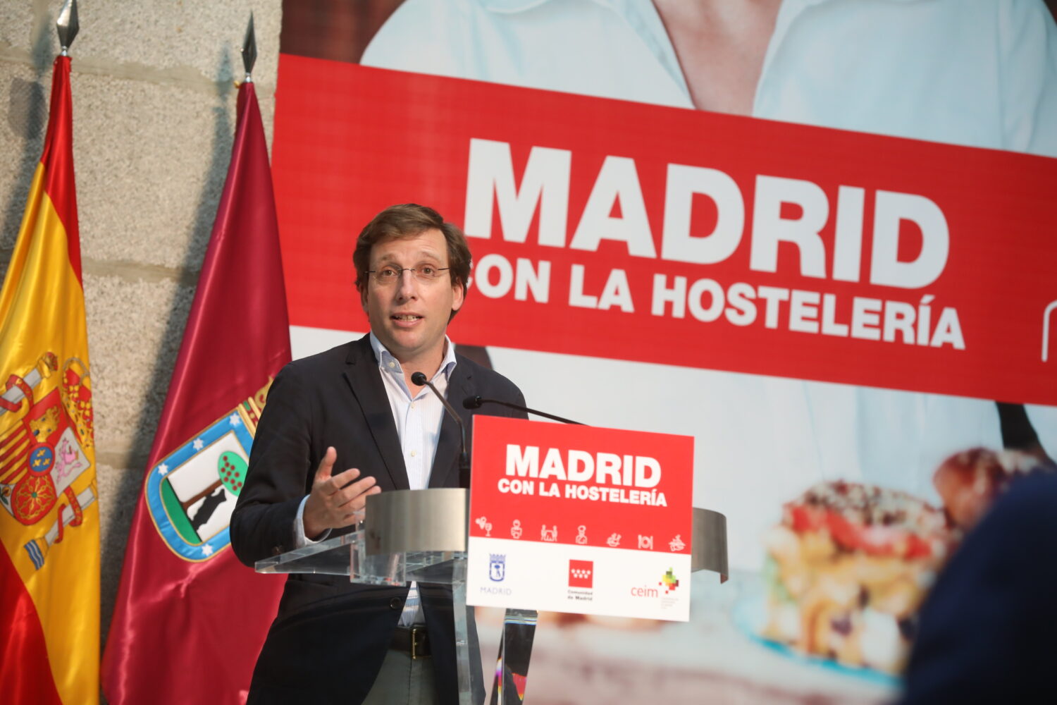 El alcalde de Madrid, José Luis Martínez-Almeida, ha participado hoy en el acto de reconocimiento que el sector de la hostelería ha rendido al Ayuntamiento de la capital y a la Comunidad de Madrid. El evento, que se ha celebrado en la Real Casa de Correos, sede del Gobierno regional, ha contado también con la presencia de la vicealcaldesa, Begoña Villacís, y de la presidenta de la Comunidad de Madrid, Isabel Díaz Ayuso, así como de diferentes representantes de ambos equipos de Gobierno.