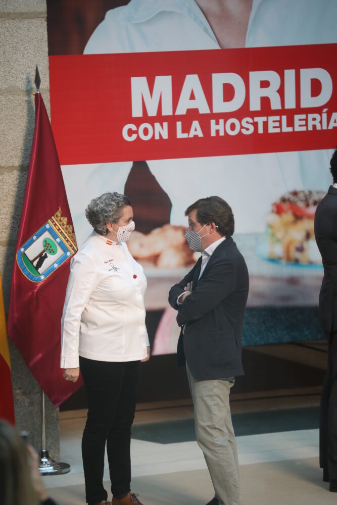 En el acto, los presidentes de CEIM-CEOE, Miguel Garrido, y de la Fundación de Asociaciones de Cocineros y Reposteros de España, FACYR, Pepa Muñoz, han agradecido la actuación de las administraciones y su apoyo incondicional al sector durante la crisis derivada de la COVID-19. Asimismo, han destacado la labor del Ayuntamiento, cuyas medidas han calificado de “pioneras y osadas” y especialmente la flexibilidad de la normativa de terrazas y la posibilidad de suplir plazas de aparcamiento por espacios para establecer terrazas, evitando así perder puestos de trabajo.