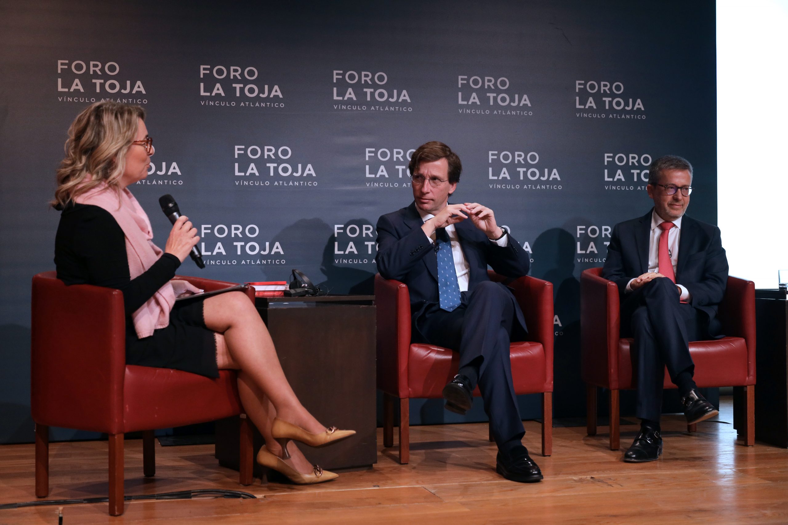 El alcalde de Madrid, José Luis Martínez-Almeida, ha participado esta mañana junto al alcalde de Lisboa, Carlos Moedas, en el coloquio ‘El liderazgo transformador de las ciudades’ enmarcado en la edición especial del Foro La Toja-Vínculo Atlántico, que se ha celebrado en la ciudad portuguesa de Lisboa. Allí ha hecho hincapié en el importante papel que las ciudades tienen para liderar los grandes cambios que se avecinan para la humanidad a partir de modelos que generen calidad de vida.