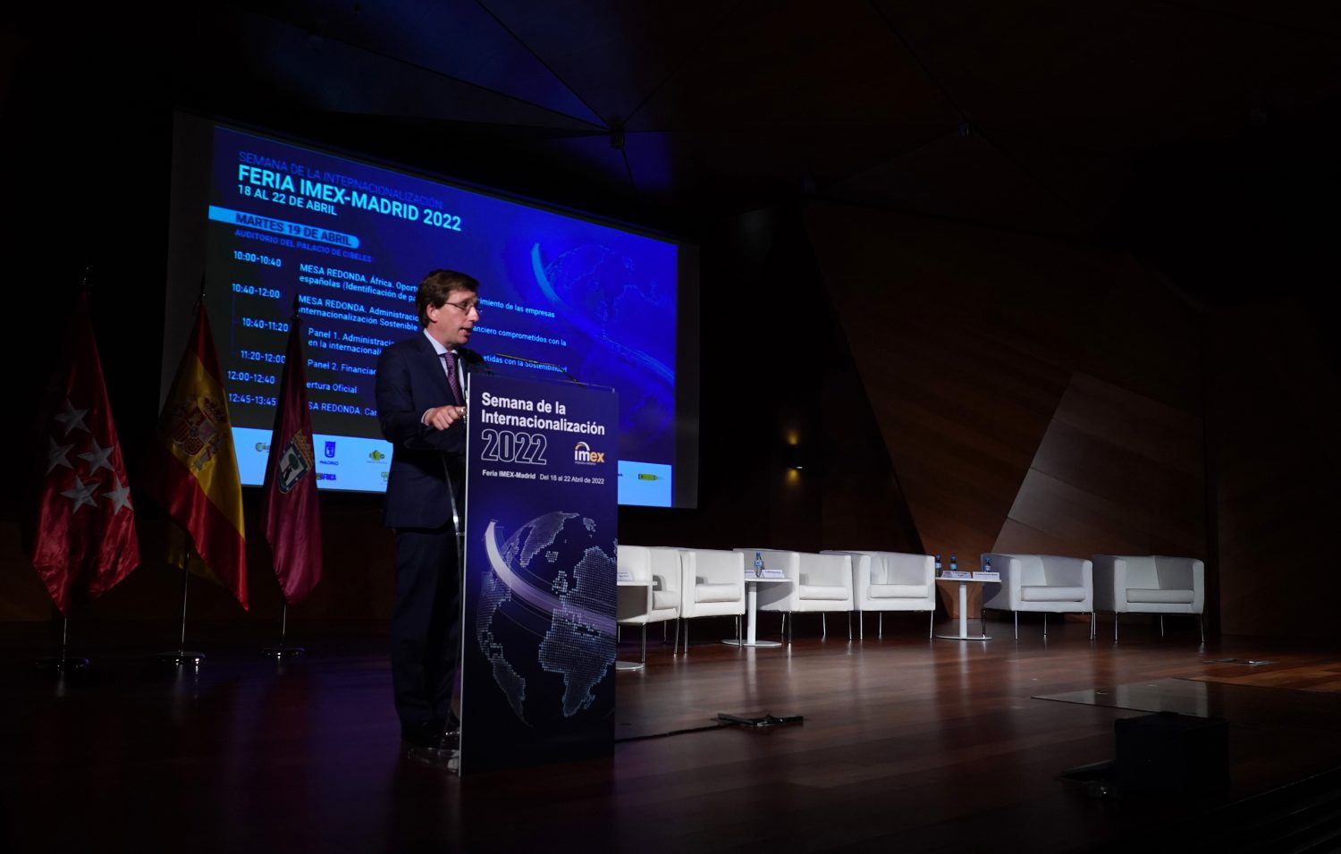 El alcalde de Madrid, José Luis Martínez-Almeida, ha destacado el papel de las empresas como las “mejores embajadoras de Madrid en el exterior”, durante la inauguración de la XX edición de IMEX-Madrid 2022, la feria de negocio internacional y comercio exterior que, enmarcada en la Semana de la Internacionalización, se celebra en formato presencial en diferentes sedes entre las que se encuentra el Ayuntamiento de la capital, colaborador del evento.