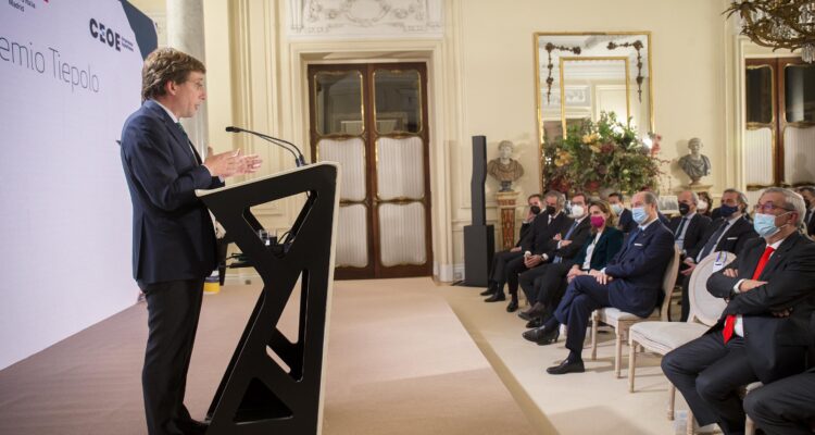 El alcalde de Madrid, José Luis Martínez-Almeida, ha calificado de «visionarios» a los dos galardonados con el Premio Tiepolo, el presidente ejecutivo de Acciona, José Manuel Entrecanales, a quien el alcalde ha entregado el galardón, y el consejero delegado y director general del Grupo Enel, Francesco Starace, por haber entendido antes que la mayoría «que el mejor futuro de nuestro planeta pasaba por su conservación y su preservación” y que ese esfuerzo debía liderarse desde la sociedad civil y el mundo empresarial “para tener una capacidad de penetración mucho mayor en el conjunto de la sociedad».