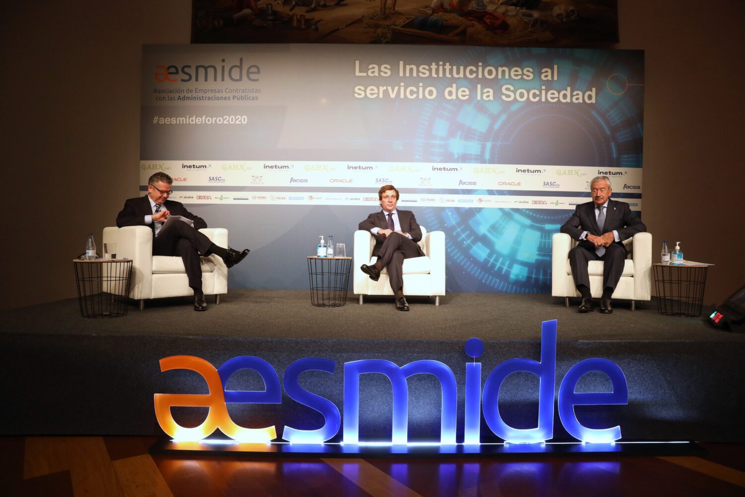 El alcalde de Madrid, José Luis Martínez-Almeida, ha participado hoy en el foro anual ‘Las instituciones al servicio de la sociedad’ organizado por la Asociación de Empresas Contratistas con las Administraciones públicas (AESMIDE), que ha analizado la importancia de reforzar la confianza de la sociedad en las administraciones, sobre todo en el momento actual condicionado por la pandemia derivada de la COVID-19.