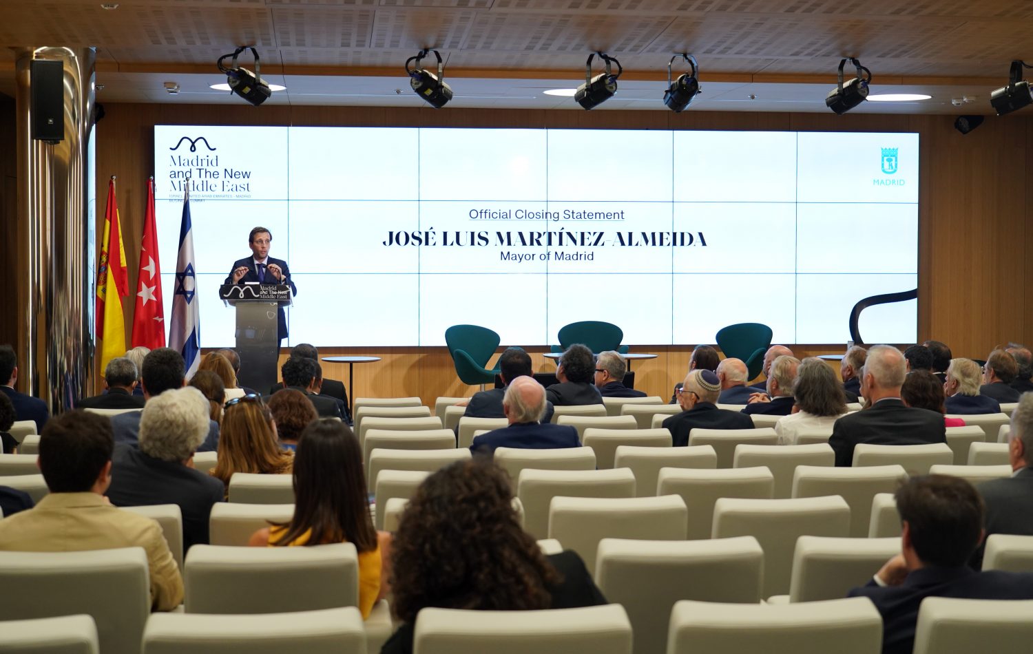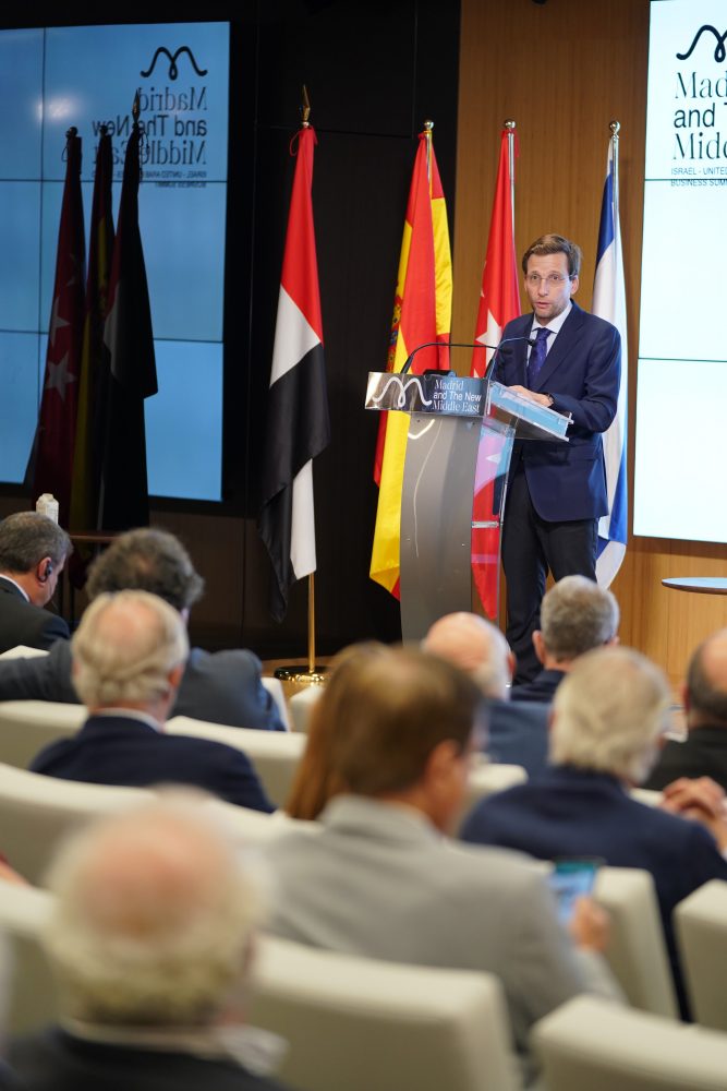 El alcalde de Madrid, José Luis Martínez-Almeida, ha participado esta tarde en la clausura de la primera Conferencia Internacional Madrid and The New Middle East, cumbre empresarial que tiene el objetivo de impulsar la cooperación económica entre Israel, Emiratos Árabes Unidos y España y donde ha puesto en valor “la situación privilegiada que tiene Madrid como puerta con Iberoamérica y nexo común entre ésta y Oriente Medio”.