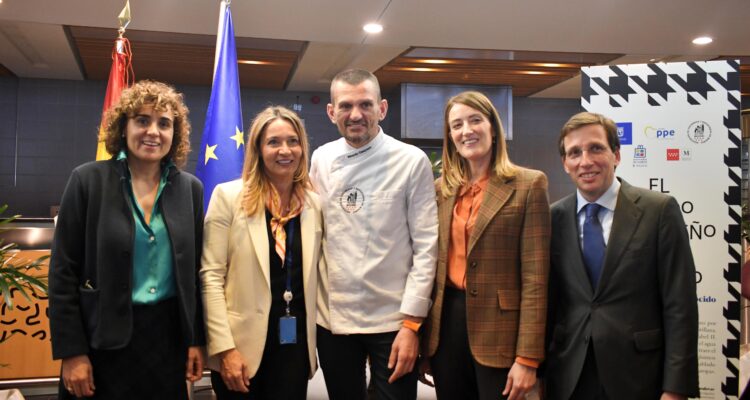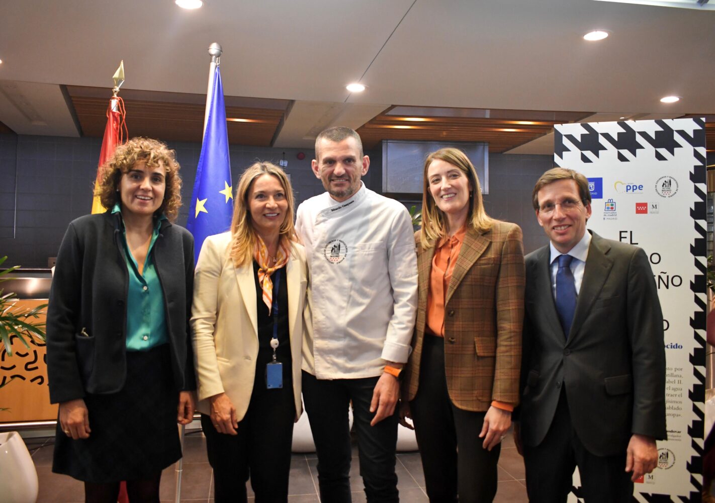 El alcalde de Madrid, José Luis Martínez-Almeida, acompañado de la concejala delegada de Turismo, Almudena Maíllo, ha participado hoy en Bruselas en un acto de promoción del cocido madrileño, organizado por la Asociación de Cocineros y Reposteros de Madrid (ACYRE) en el Parlamento Europeo, con motivo de la celebración, la próxima semana, del Día Internacional del Cocido.