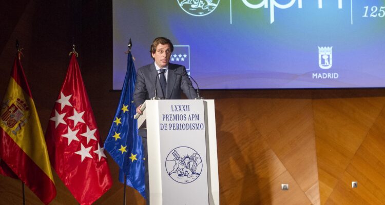 El alcalde de Madrid, José Luis Martínez-Almeida, ha dado este martes la bienvenida a la entrega de los Premios APM de Periodismo 2019 y 2020, un acto presidido por sus majestades los reyes que se ha celebrado en el Auditorio Caja de Música CentroCentro del Palacio de Cibeles. En su intervención, Almeida ha destacado que el consumo de información durante el último año ha sido mayor que nunca y ha agradecido la labor periodística, especialmente durante los meses de pandemia, un “esfuerzo extraordinario que el conjunto de la profesión periodística ha hecho para que en momentos de incertidumbre y confusión todos hayamos podido recibir información en nuestras casas”.