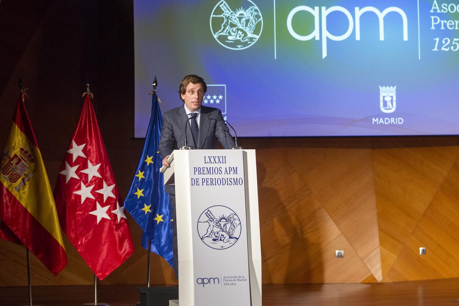 El alcalde de Madrid, José Luis Martínez-Almeida, ha dado este martes la bienvenida a la entrega de los Premios APM de Periodismo 2019 y 2020, un acto presidido por sus majestades los reyes que se ha celebrado en el Auditorio Caja de Música CentroCentro del Palacio de Cibeles. En su intervención, Almeida ha destacado que el consumo de información durante el último año ha sido mayor que nunca y ha agradecido la labor periodística, especialmente durante los meses de pandemia, un “esfuerzo extraordinario que el conjunto de la profesión periodística ha hecho para que en momentos de incertidumbre y confusión todos hayamos podido recibir información en nuestras casas”.