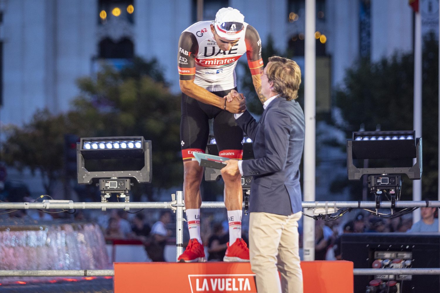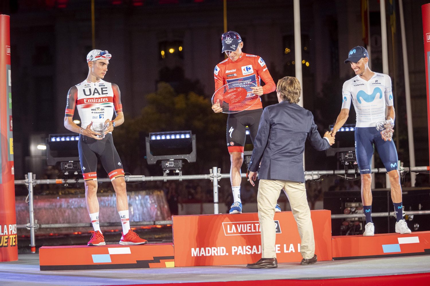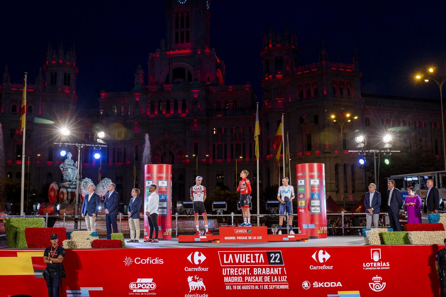 El alcalde de Madrid, José Luis Martínez-Almeida, ha entregado el primer premio de la 77º edición de la Vuelta Ciclista a España a Renco Evenepoel en el podio situado en Cibeles, tras el regreso de esta prueba a la capital en el año que ostenta la Capitalidad Mundial del Deporte.