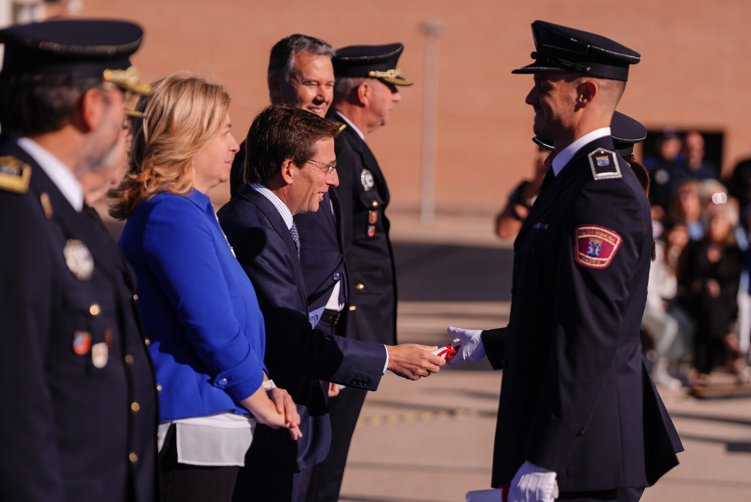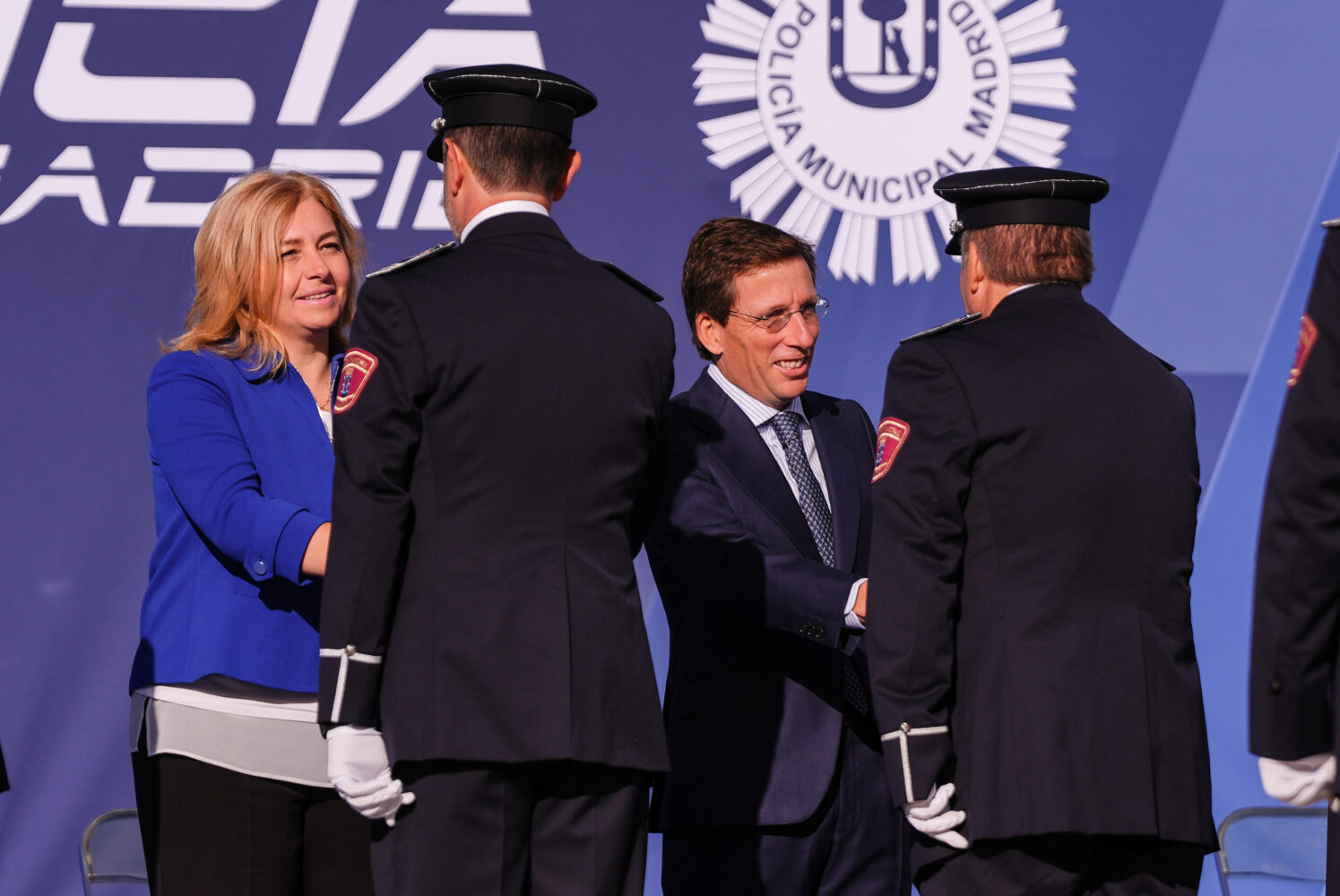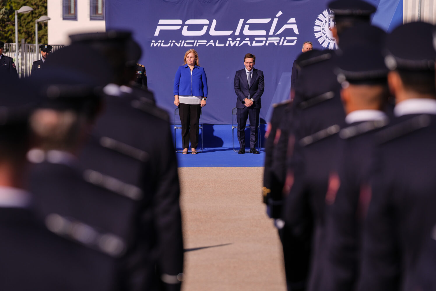 En su intervención, Almeida ha subrayado el esfuerzo del equipo de Gobierno por dotar a la Policía Municipal de los mejores medios y recursos y por convocar todas las plazas posibles para incrementar la plantilla policial. Así, ha explicado que en estos momentos hay 550 plazas en fase de oposición, a las que se sumarán otras 500 que se convocarán antes de final de año, y ha informado de que en este mandato ya se han incorporado 363 nuevos policías, un esfuerzo que continuará el próximo año con la incorporación de 327 agentes más.