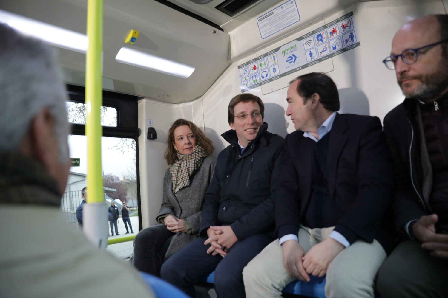 El alcalde de Madrid, José Luis Martínez-Almeida, acompañado del delegado del Área de Medio Ambiente y Movilidad, Borja Carabante; los concejales de los distritos de Centro, José Fernández, y de Arganzuela, Cayetana Hernández de la Riva, y el gerente de la Empresa Municipal de Transportes, Alfonso Sánchez, ha estrenado esta mañana la segunda línea cero, la 002, que une Puerta de Toledo con Argüelles y que ha comenzado a funcionar esta mañana.